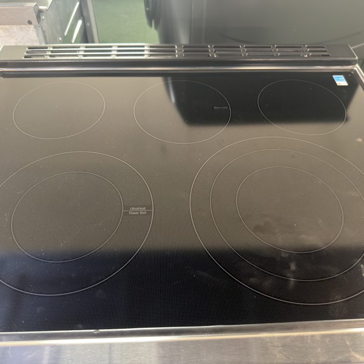 LG 30-in Glass Top 5 burners 6.3-cu ft Air Fry Convection Oven Slide-In Electric Range ( PrintProof Stainless Steel )
