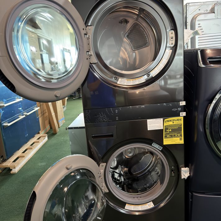LG 5.0 cu.ft. Washer, 7.4 cu.ft. Electric Dryer, Washtower with Center Control in Black Steel