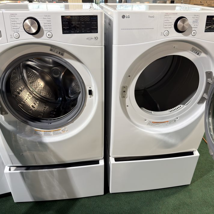 LG FRONT LOAD WASHER & ELECTRIC DRYER WITH PEDESTALS- WHITE