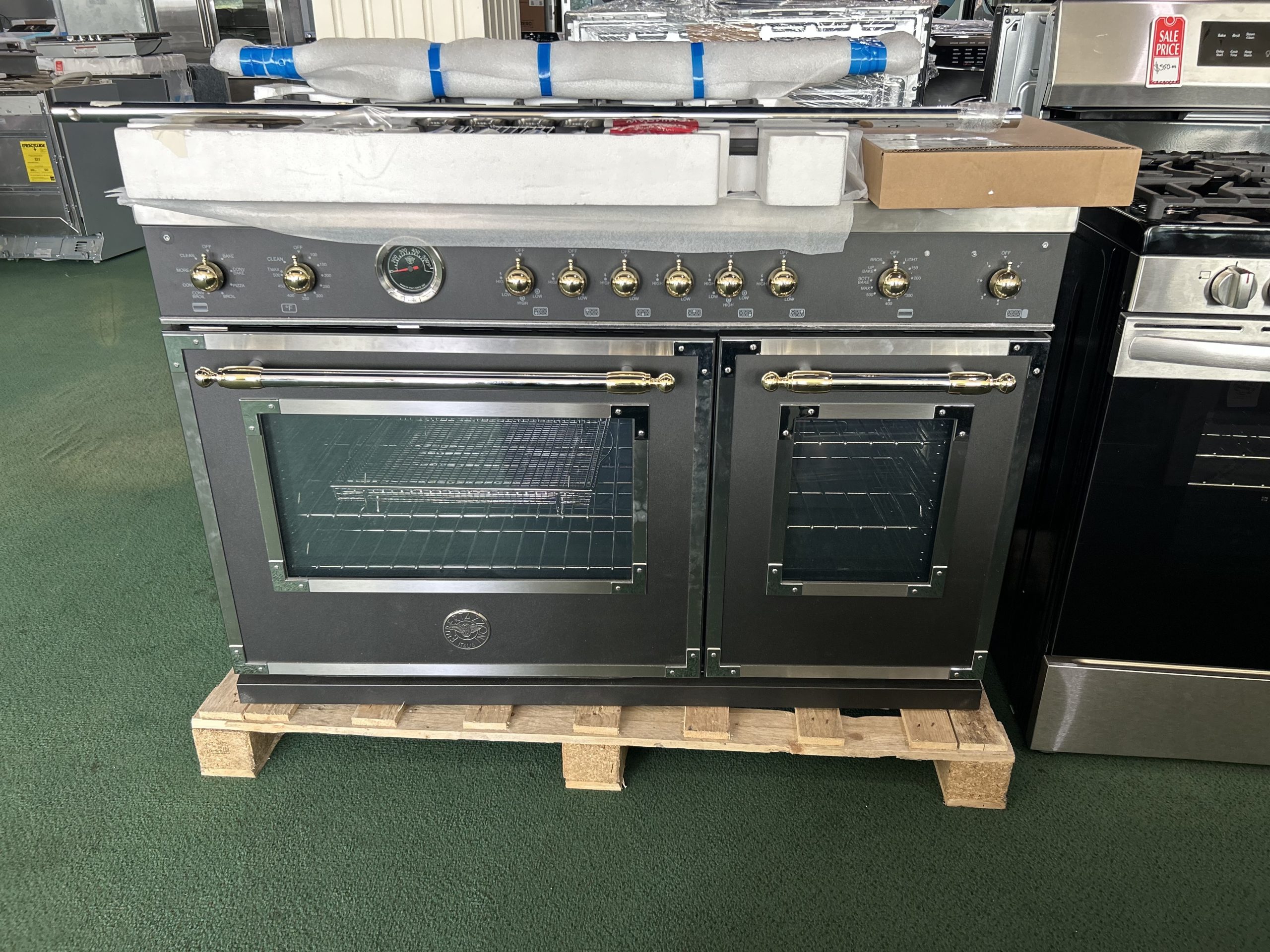 Bertazzoni Heritage Series HER486BTFEPNET 48 Inch Freestanding Dual Fuel Range with 6 Sealed Burners, Double Oven, 7 cu. ft. Total Oven Capacity, Self-Cleaning, and Electric Griddle: Nero Black, NG