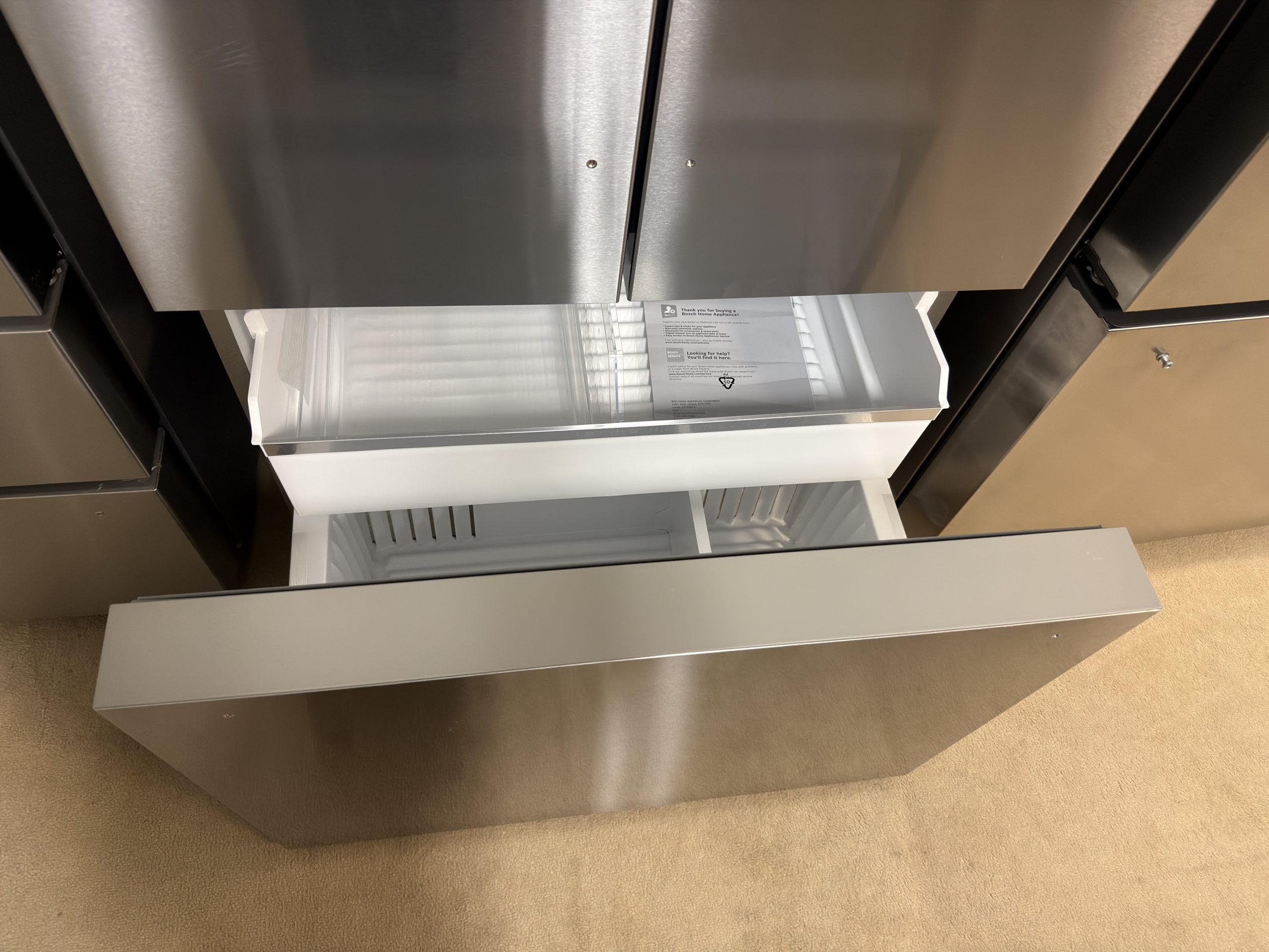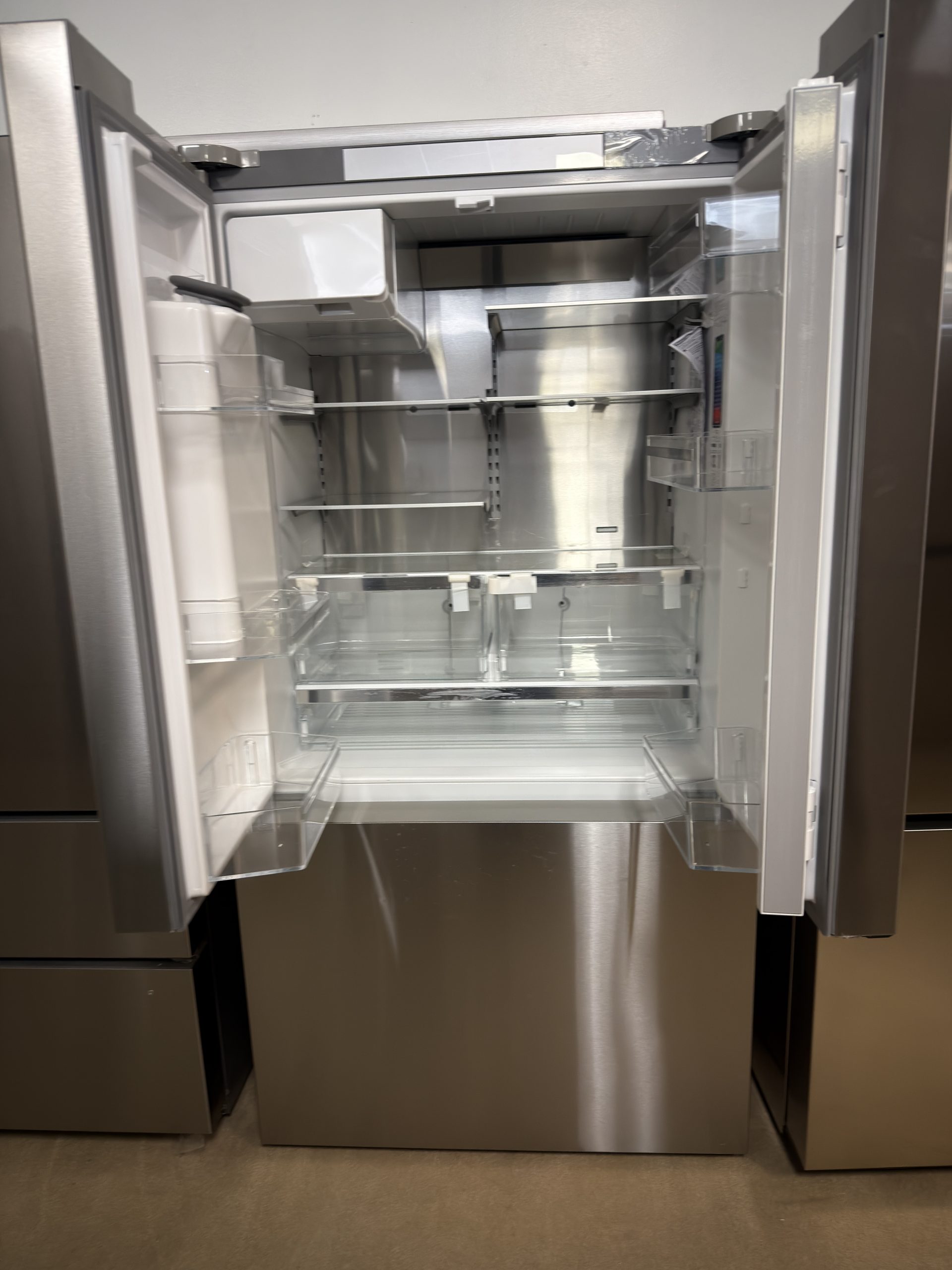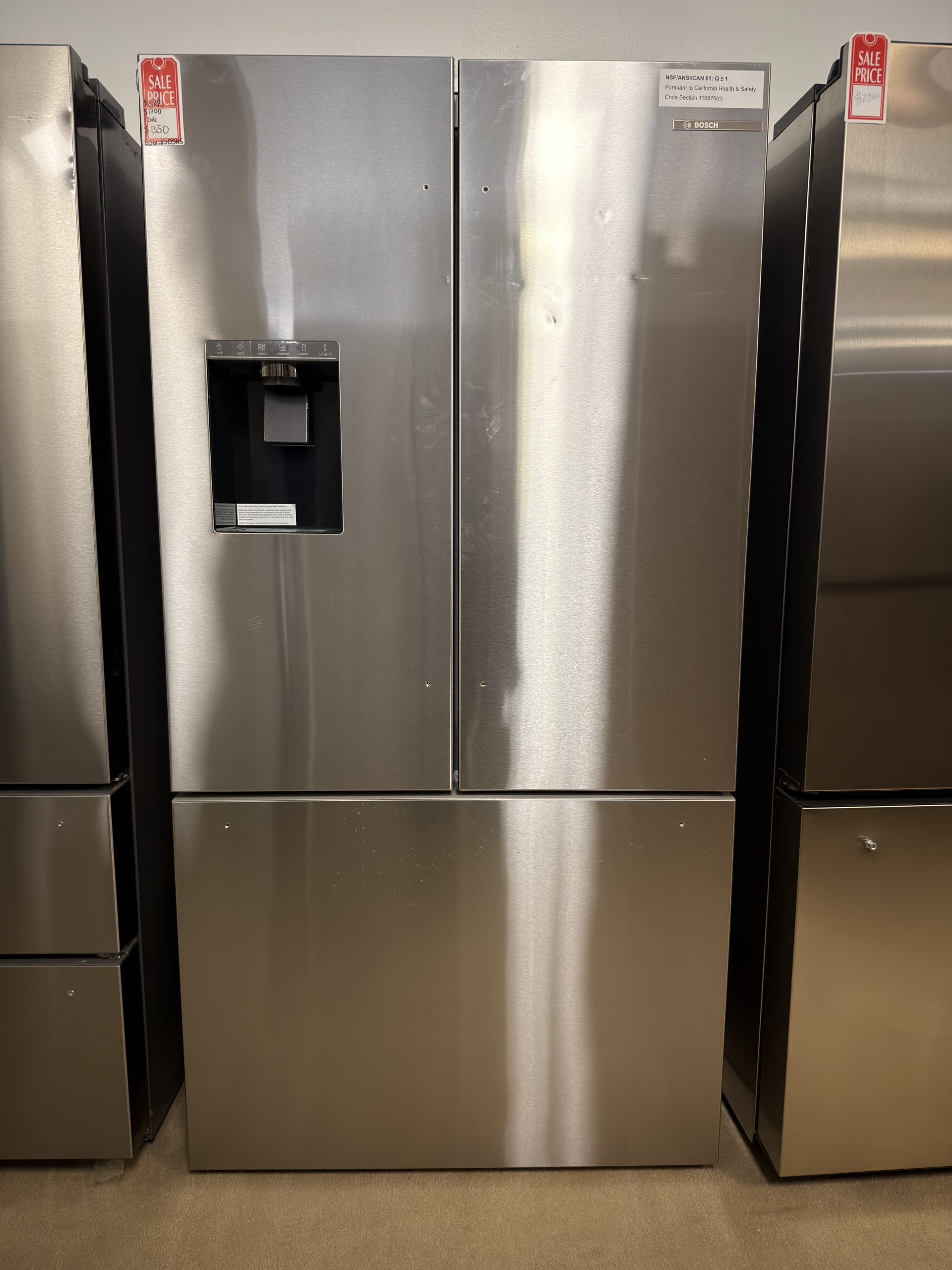 Bosch 500 Series B36CD50SNS 36 Inch Freestanding French Door Smart Refrigerator with 21.6 Cu. Ft. Total Capacity, Counter Depth, External Ice/Water Dispenser, Ice Maker, UltraClarityPro™, AirFresh®, Home Connect™, MultiAirFlow®, QuickPro Ice System™, and ENERGY STAR®.