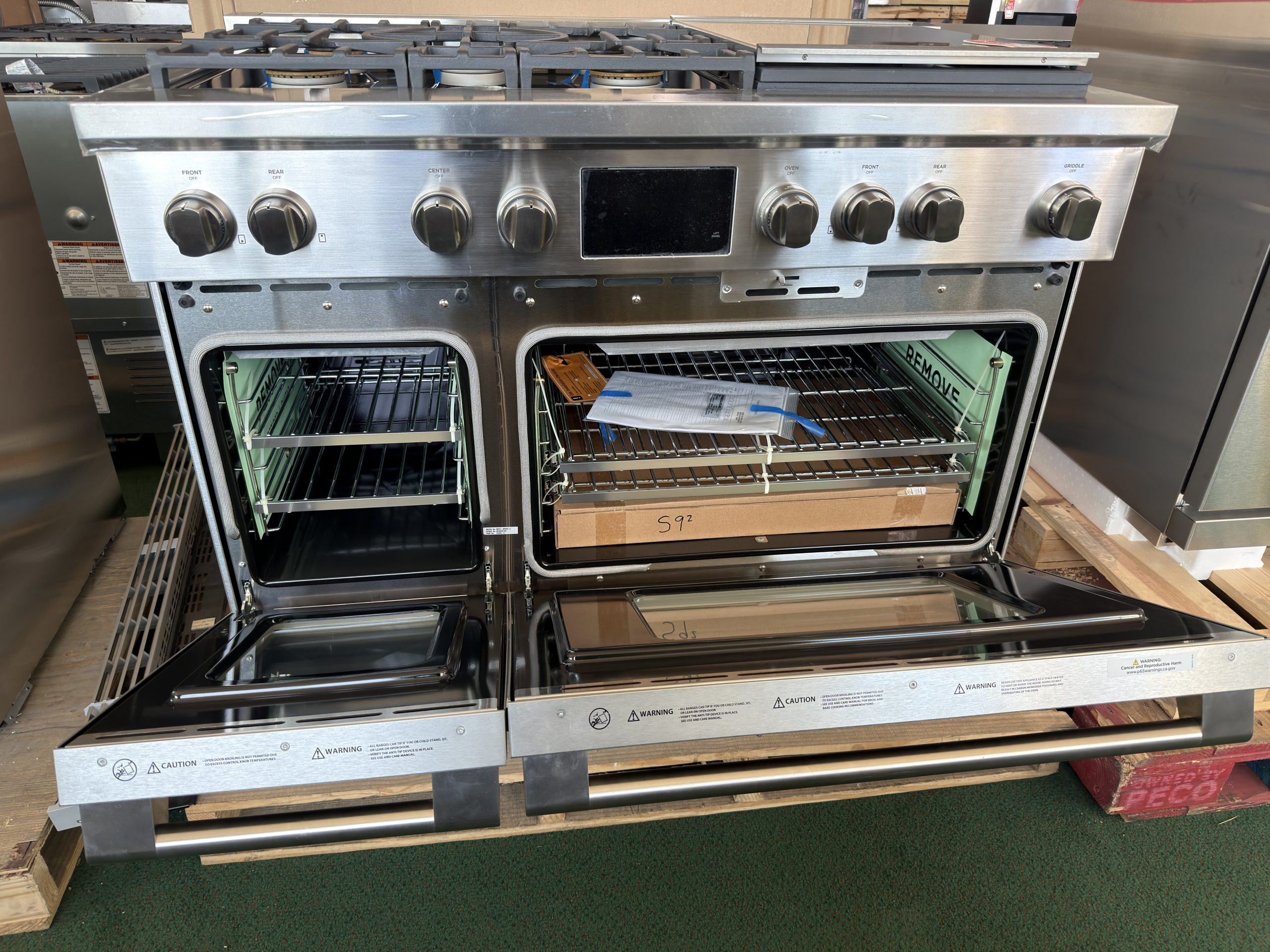 Fisher & Paykel – 48″ Professional 6.9 Cu. Ft. Freestanding Double Oven Dual Fuel True Convection Range with Self-Cleaning – Stainless Steel/Black Glass