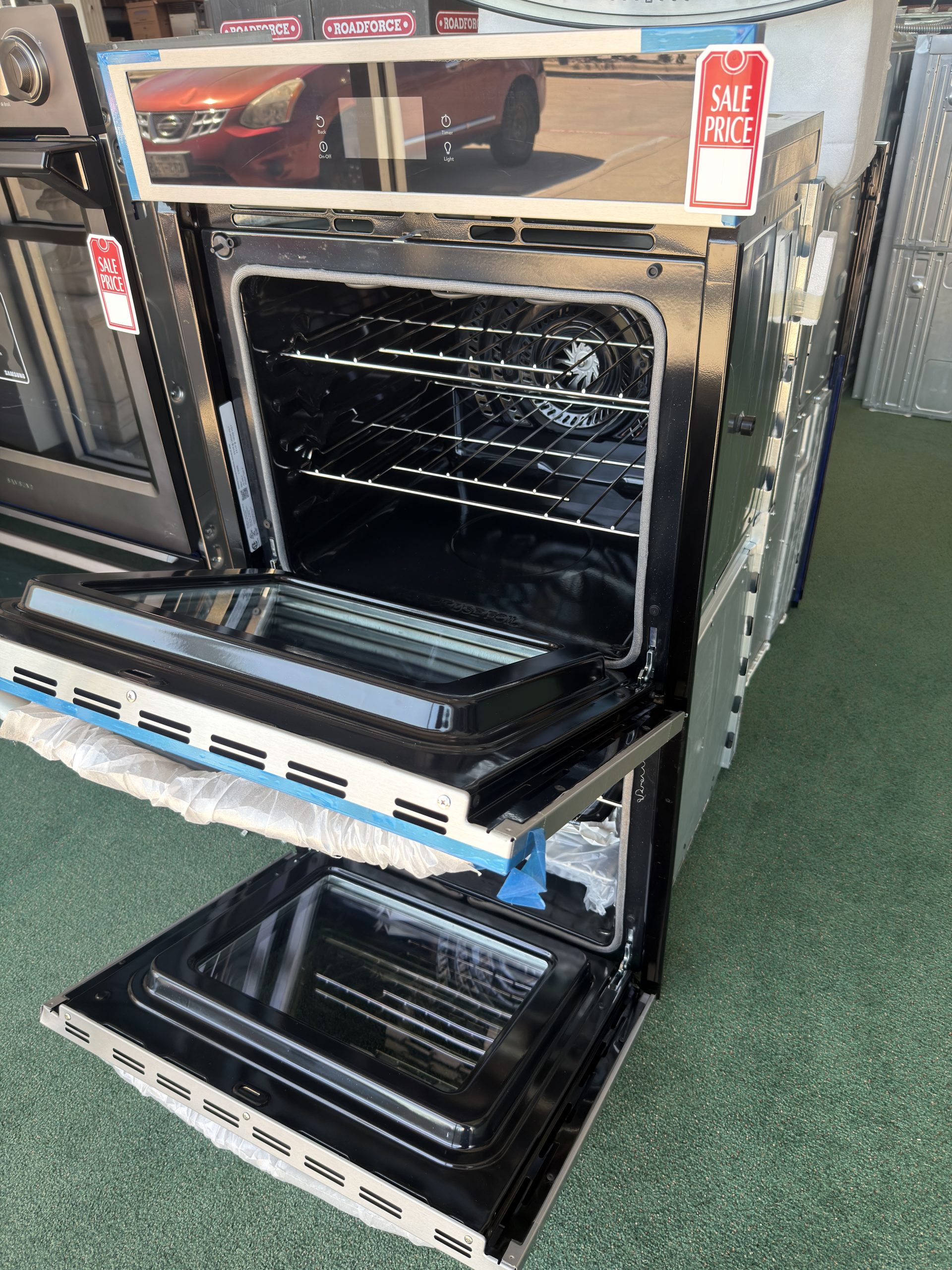Frigidaire Gallery Series GCWD2767AF 27 Inch Double Electric Wall Oven with Air Fry, 7.6 Cu.Ft. Capacity, Total Convection, Self Clean, Touch Screen Control Panel, No Pre Heat, Steam Bake, Temperature Probe, Glide Rack, Air Sous Vide, Control Lock, Sabbath Mode, and Star-K Certified: Stainless Steel.