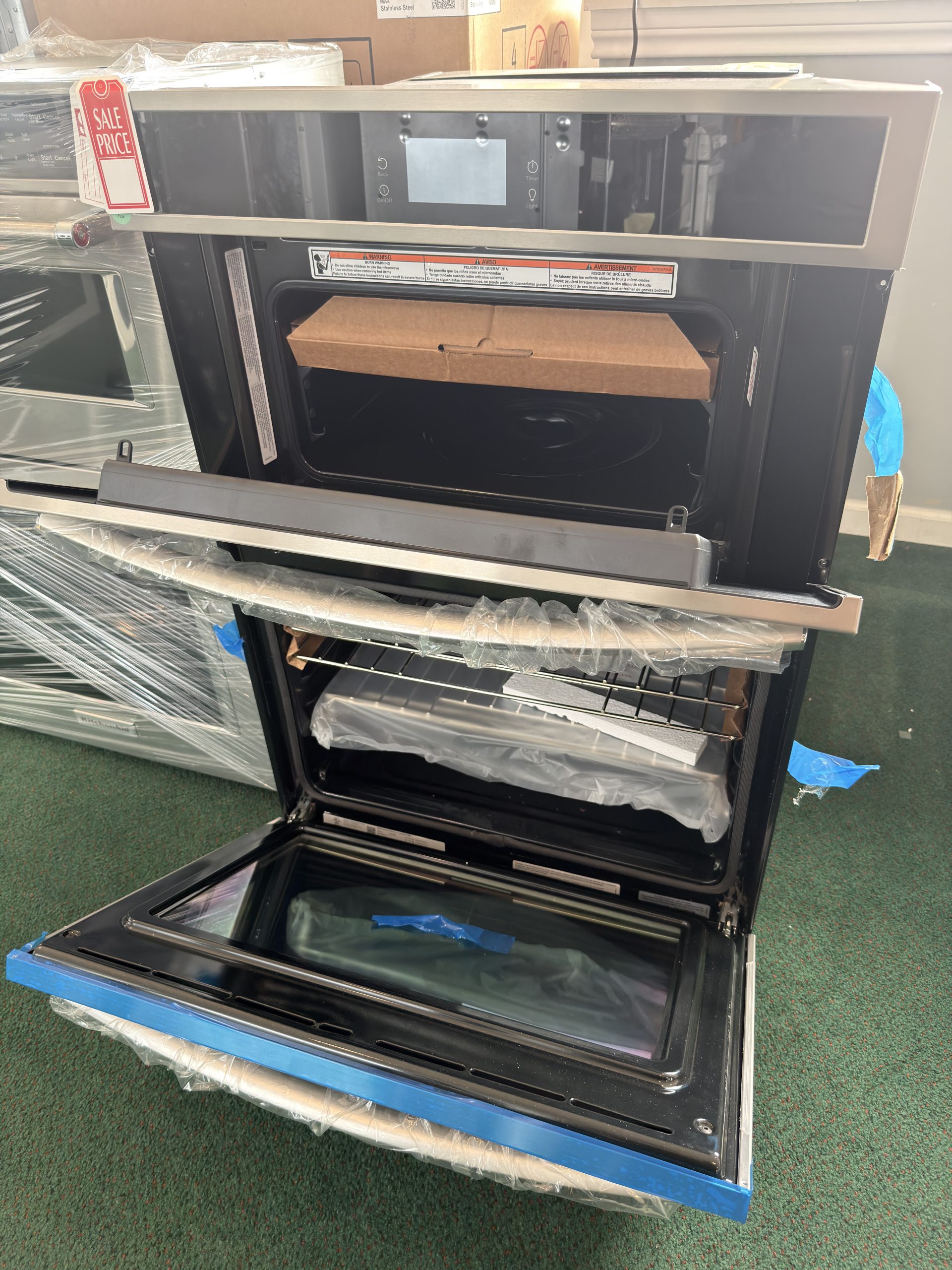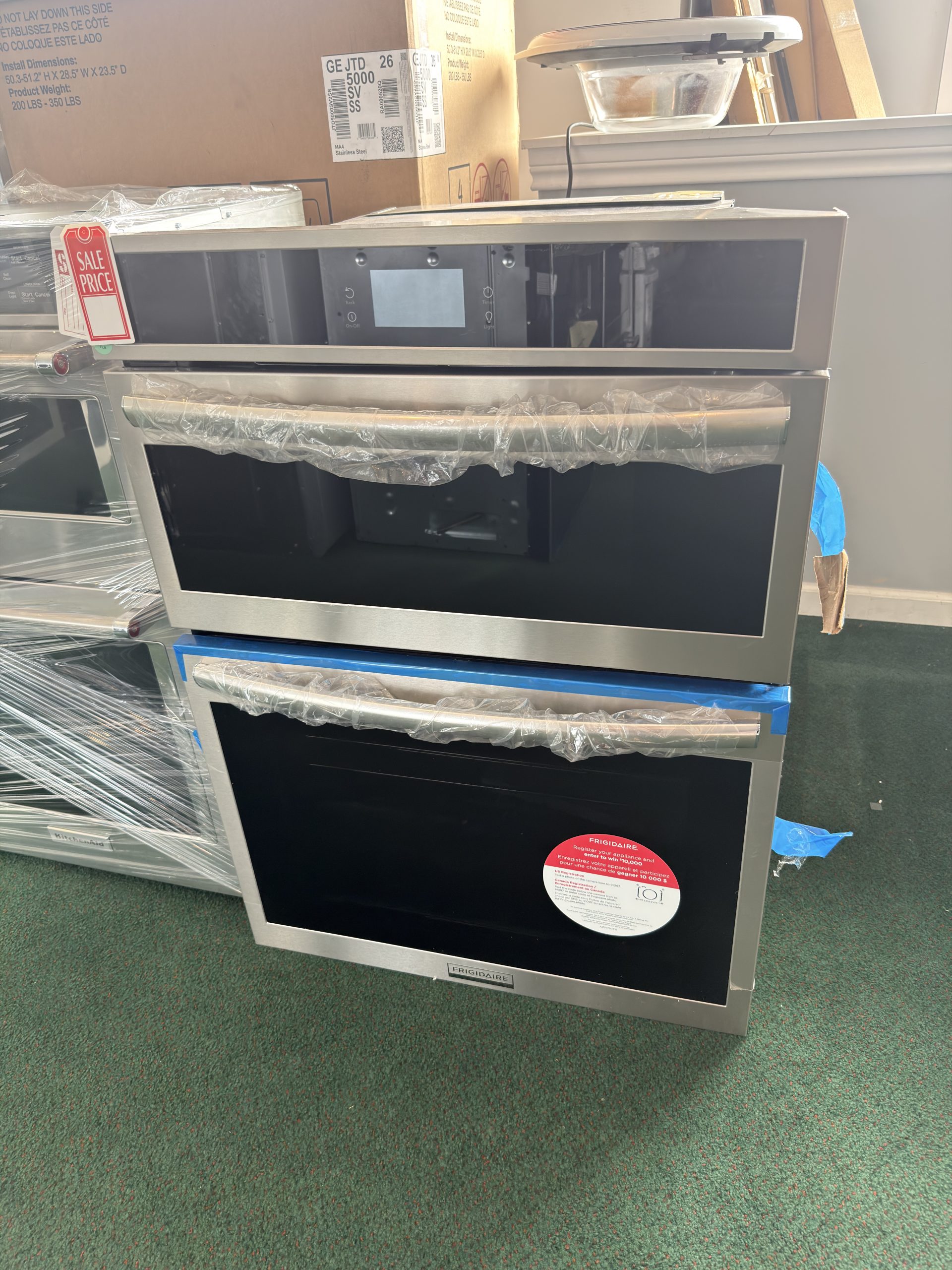 Frigidaire Gallery Series GCWM3067AF 30 Inch Combination Electric Wall Oven with Air Fry, 7.0 Cu. Ft. Total Capacity, Total Convection Oven, Steam/Self Clean, Slow Cook, Steam Bake, Delay Bake, Air Sous Vide, Microwave Cooking, Add 30 Seconds, Sabbath Mode, and Star-K Certified: Stainless Steel.