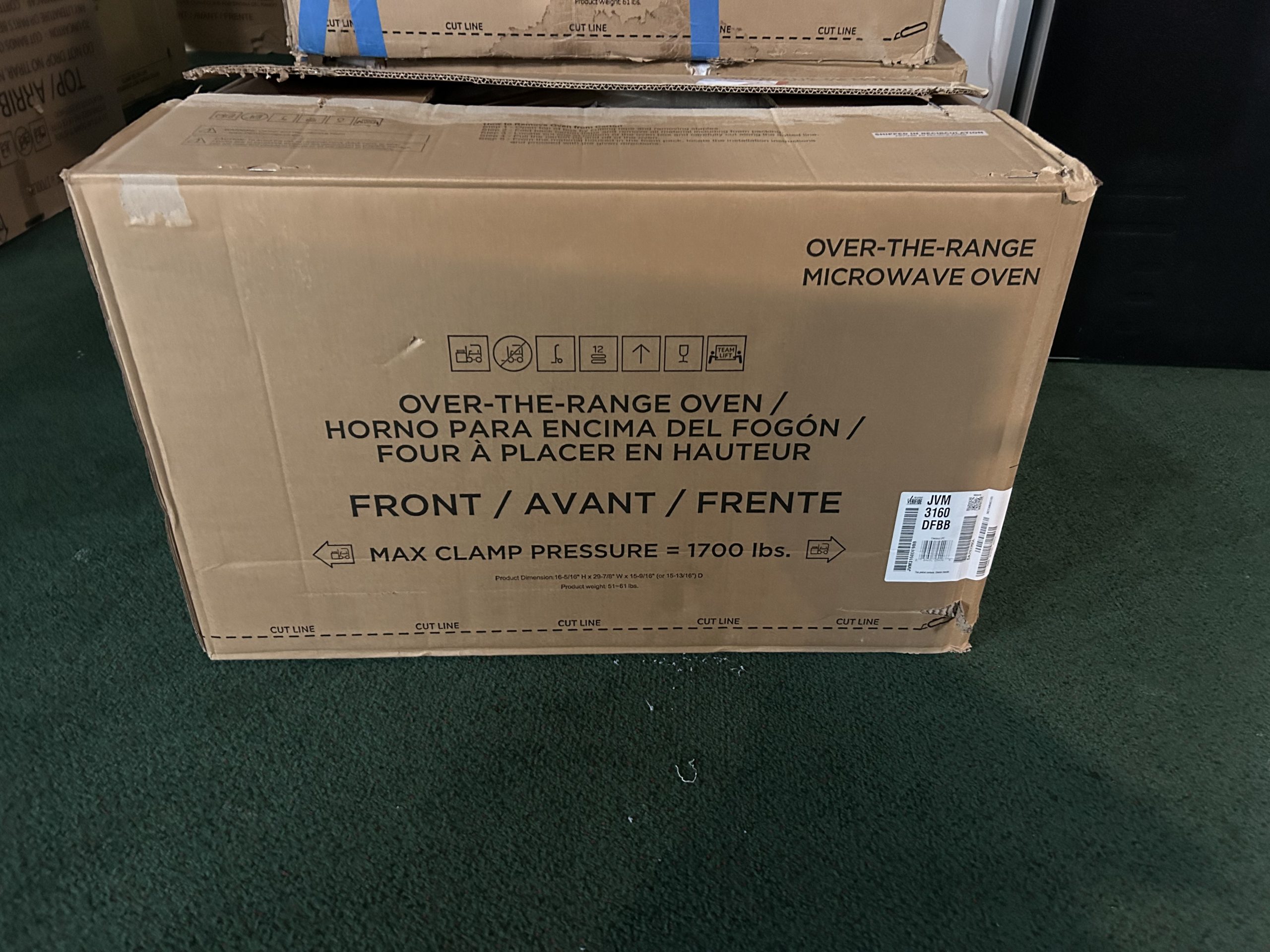 GE JVM3160DFBB 30 Inch Over-the-Range Microwave Oven with 1.6 cu. ft. Capacity, 300 CFM Exhaust Fan, 1,000 Cooking Watts, Auto and Time Defrost and Convenience Cooking Controls: Black.