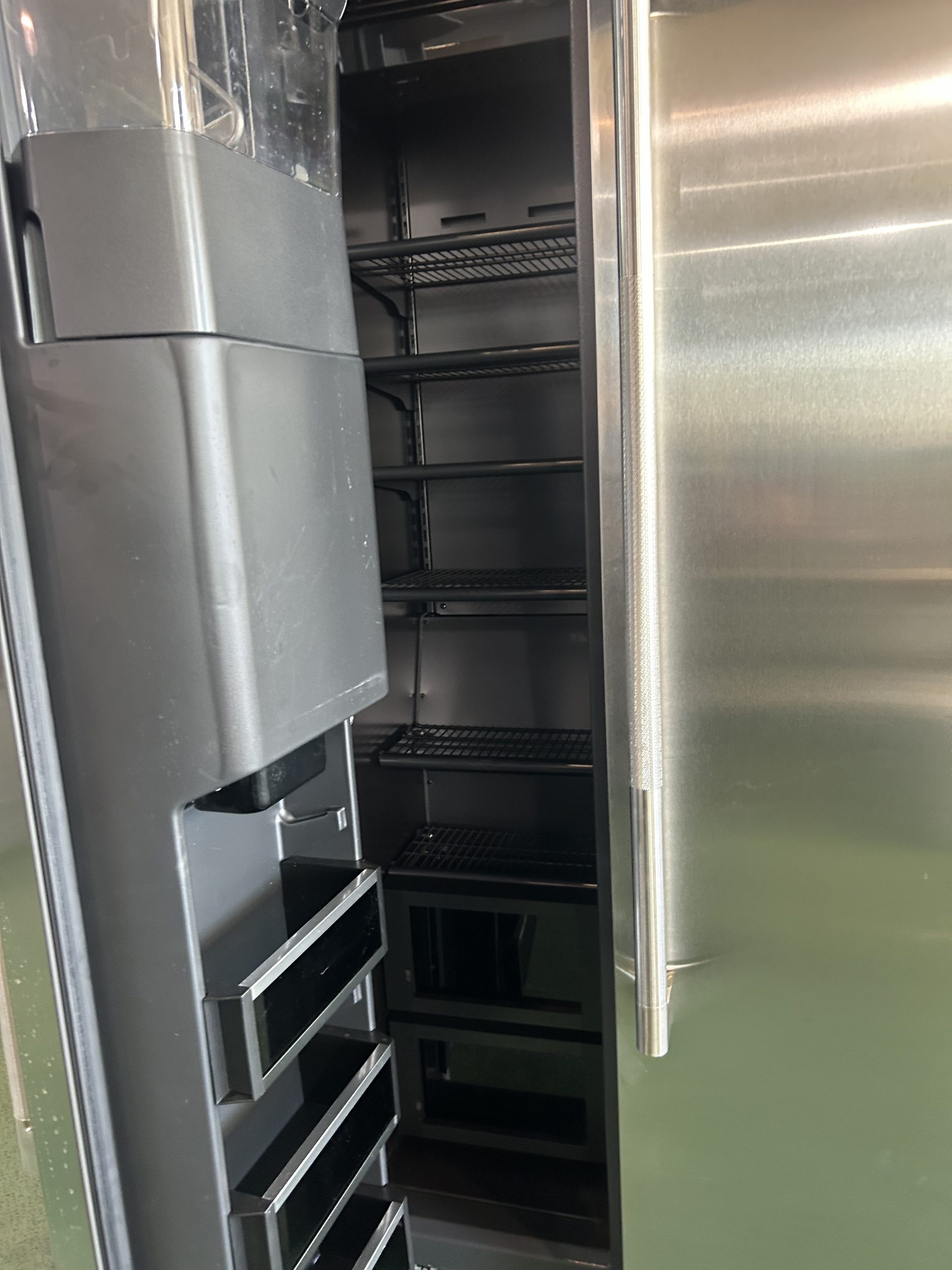 JennAir RISE™ JBSS42E22L 42 Inch Counter Depth Built-In Side by Side Refrigerator with 25.5 Cu. Ft. Total Capacity, Daring Obsidian Interior, Precision Temperature Management™ System, Ice Maker, Filtered Water/Ice Dispenser, UL Listed, STAR K Certified, and ENERGY STAR® Certified.