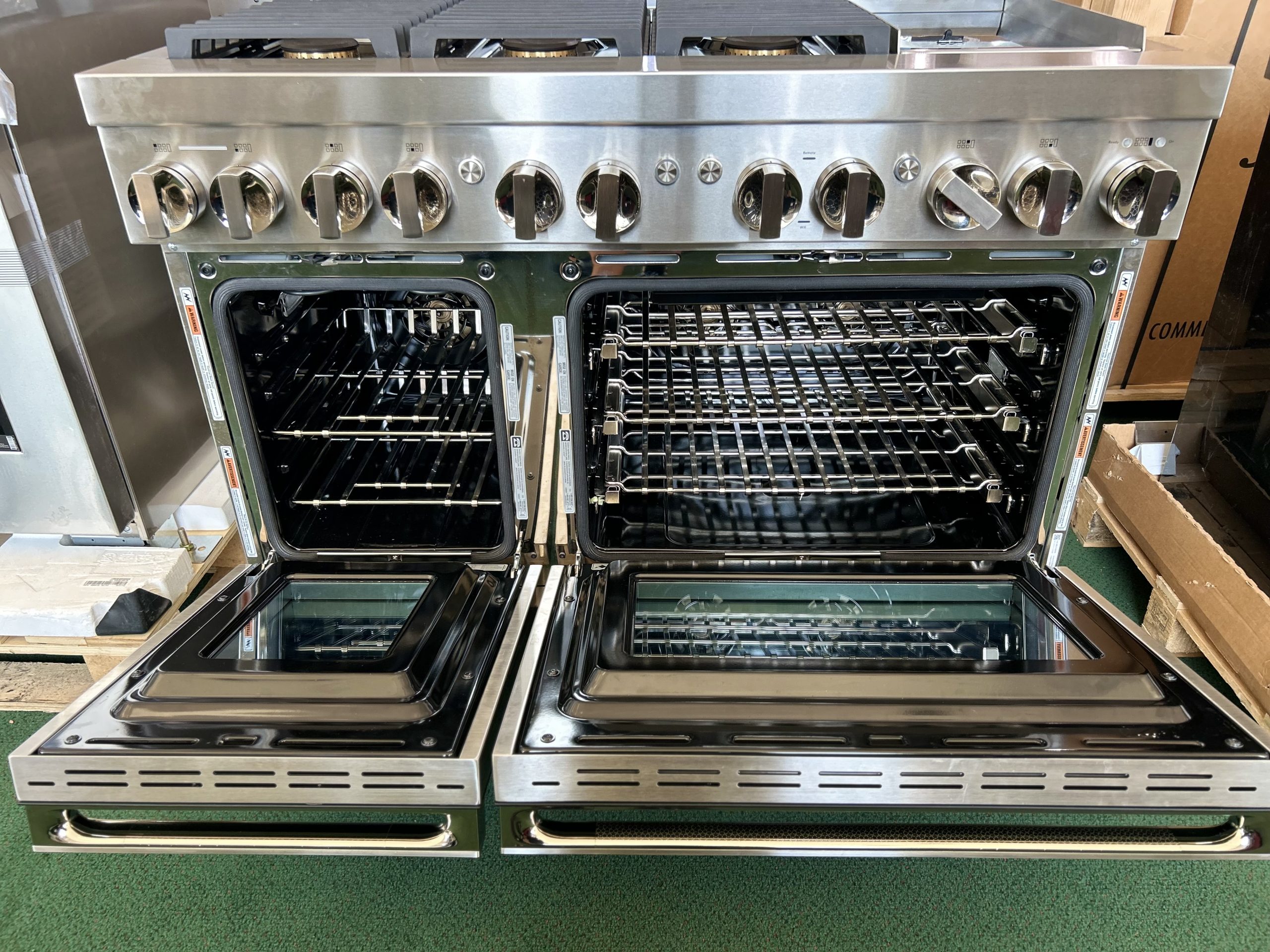 JennAir NOIR™ JDRP548HM 48 Inch Freestanding Professional Gas Smart Range with 6 Sealed Burners, Double Oven, 6.3 Cu. Ft. Total Capacity, Continuous Grates, Self-Clean, Chrome-Infused Griddle, Cinematic Lighting, Dual-Stacked PowerBurners, Prop 65, and UL Certified.