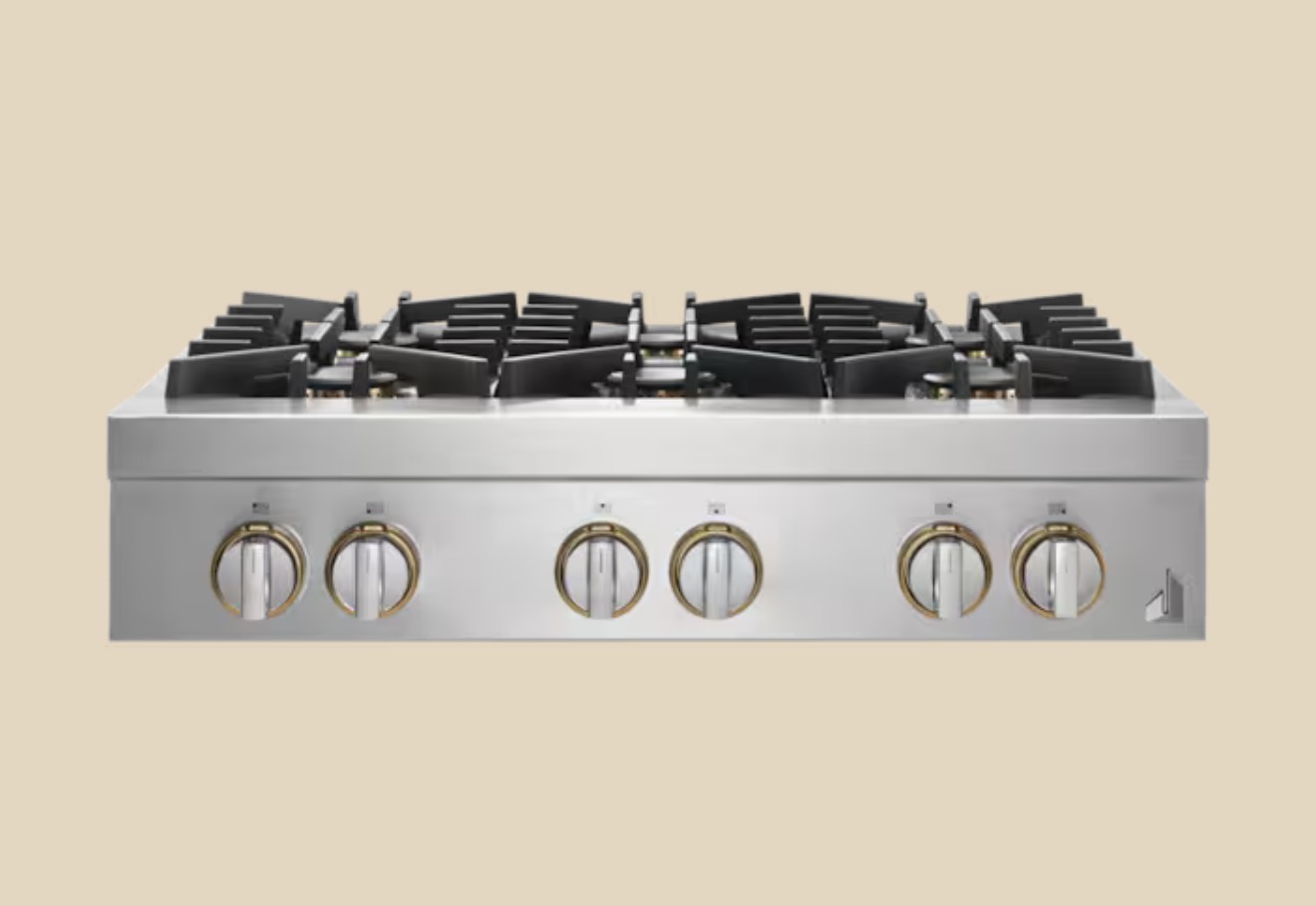JennAir RISE™ JGCP436HL 36 Inch Gas Rangetop with Dual-Stacked PowerBurners, Halo-Effect Knobs, 15 Rangetop Configurations, Cast Iron Grates, and Electronic Ignition with Flame-Sensing™ Reignition