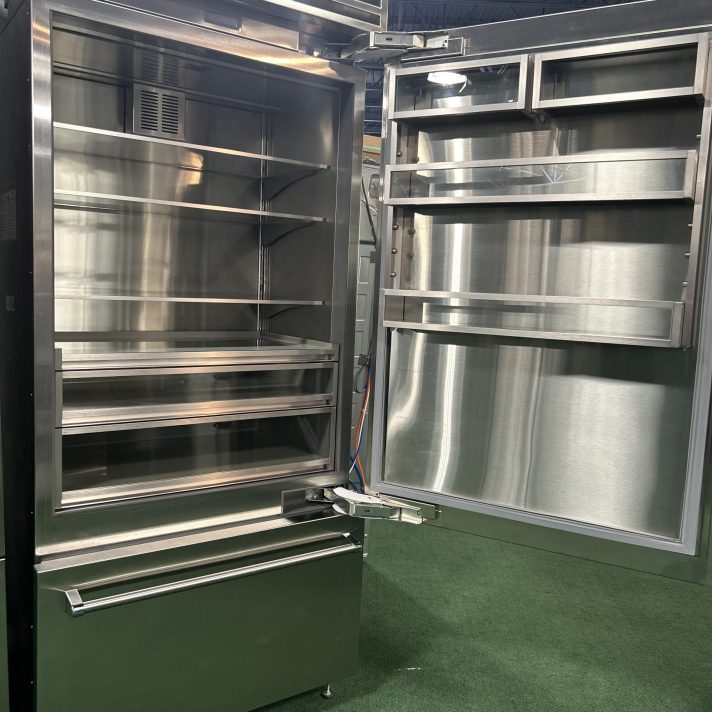 KitchenAid KRFF577KPS 36-inch Freestanding French Door Refrigerator with 26.8 cu. ft. Capacity, 5 Glass Shelves, SatinGlide® Crispers, ExtendFresh™ Temp System, Exterior Ice/Water Dispenser, ENERGY STAR®, and Star-K: Stainless Steel.