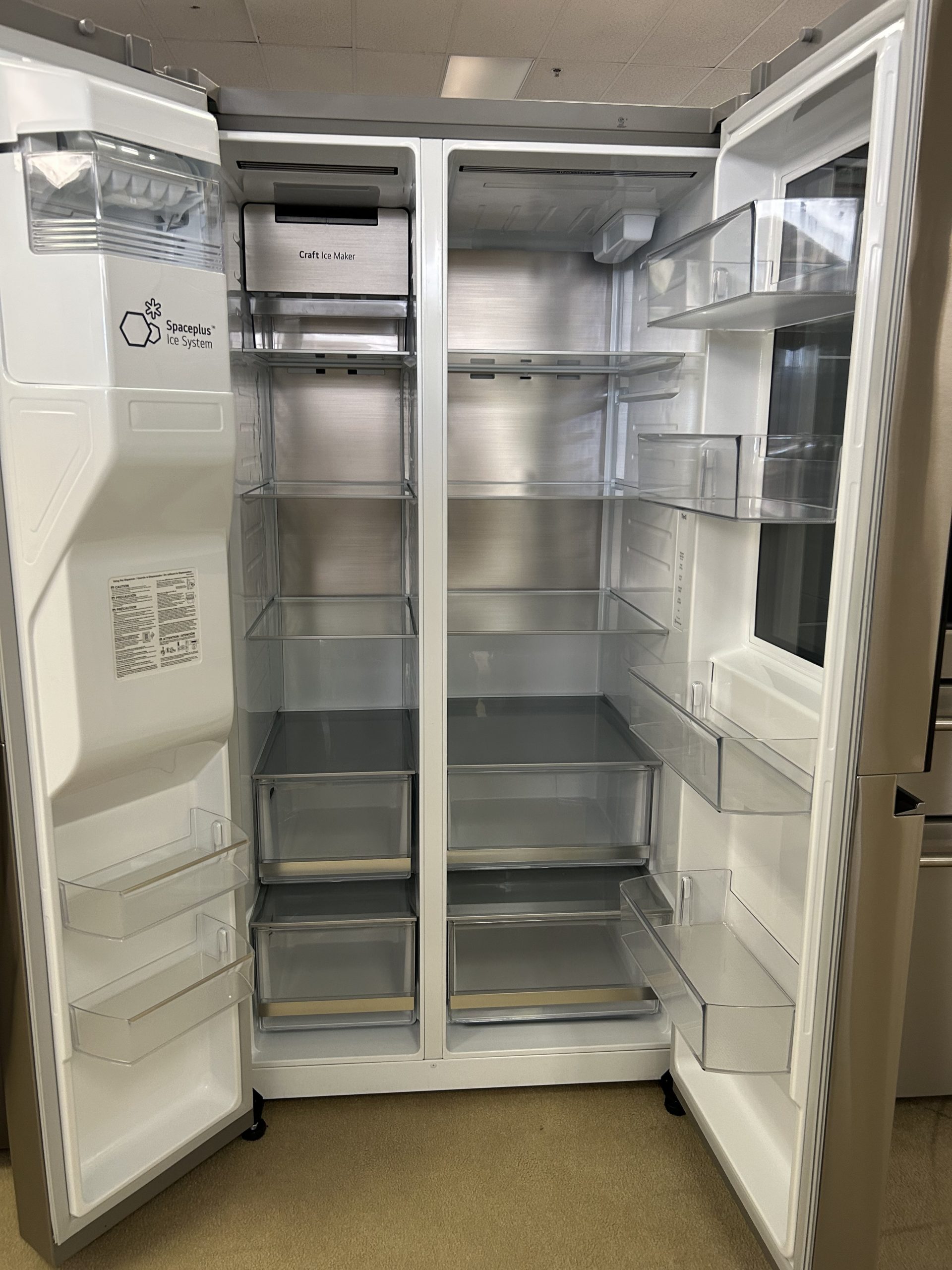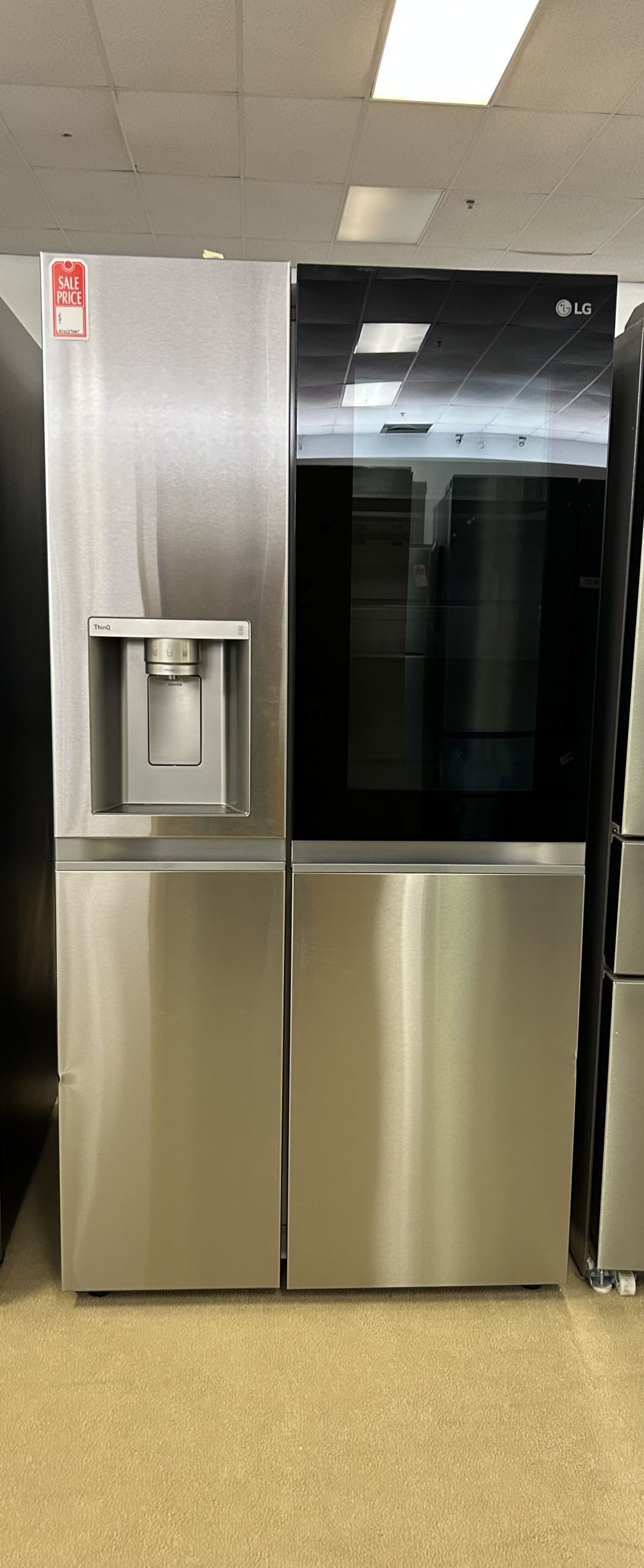 LG LRSOS2706S 36 Inch Freestanding Side by Side Smart Refrigerator with 27.1 Cu. Ft. Total Capacity, Edge-to-Edge InstaView®, Dual Ice Maker, UVnano™ Dispenser, Cool Guard Panel, ADA Compliant, and ENERGY STAR® Certified: PrintProof™ Stainless Steel.