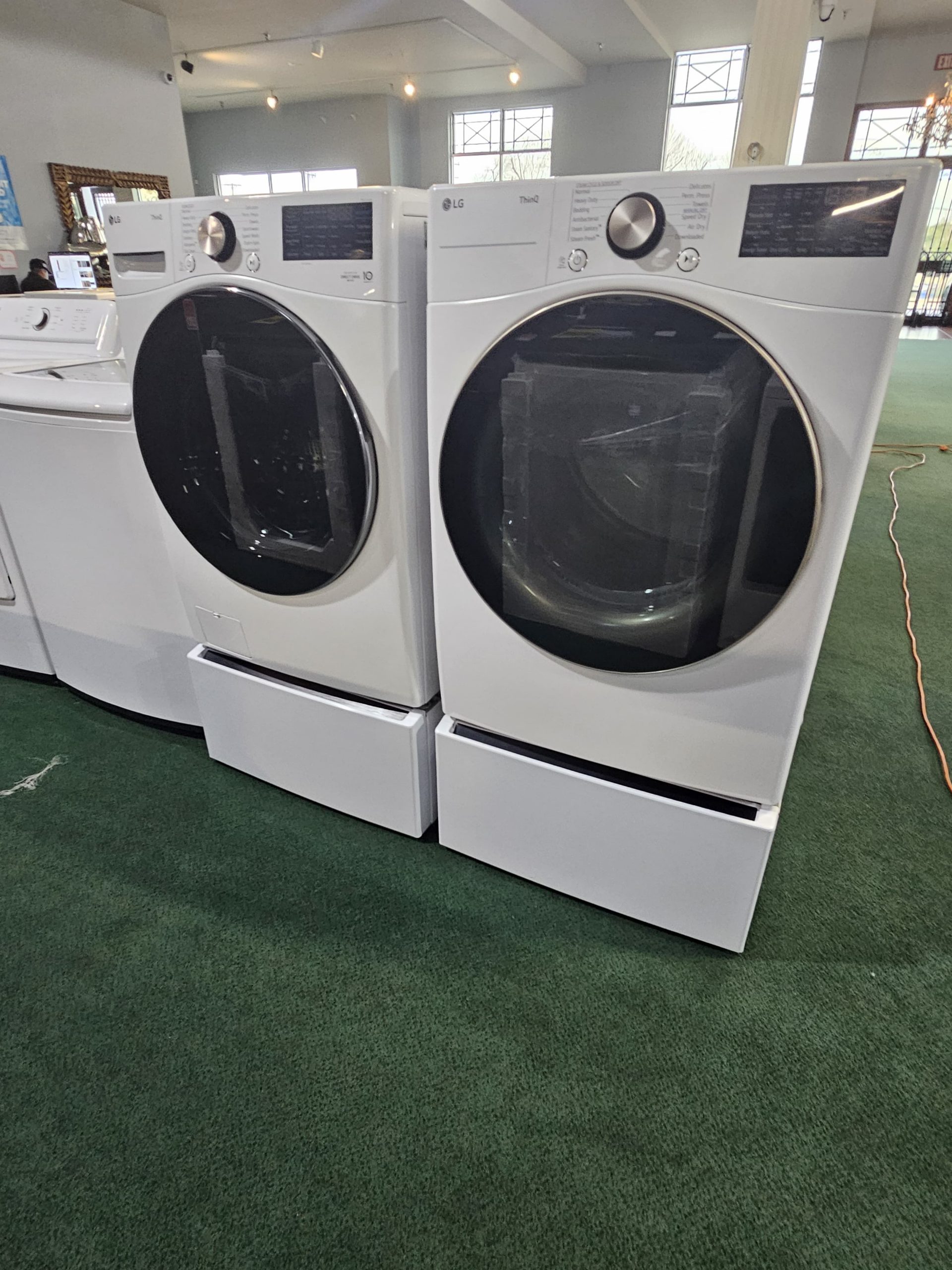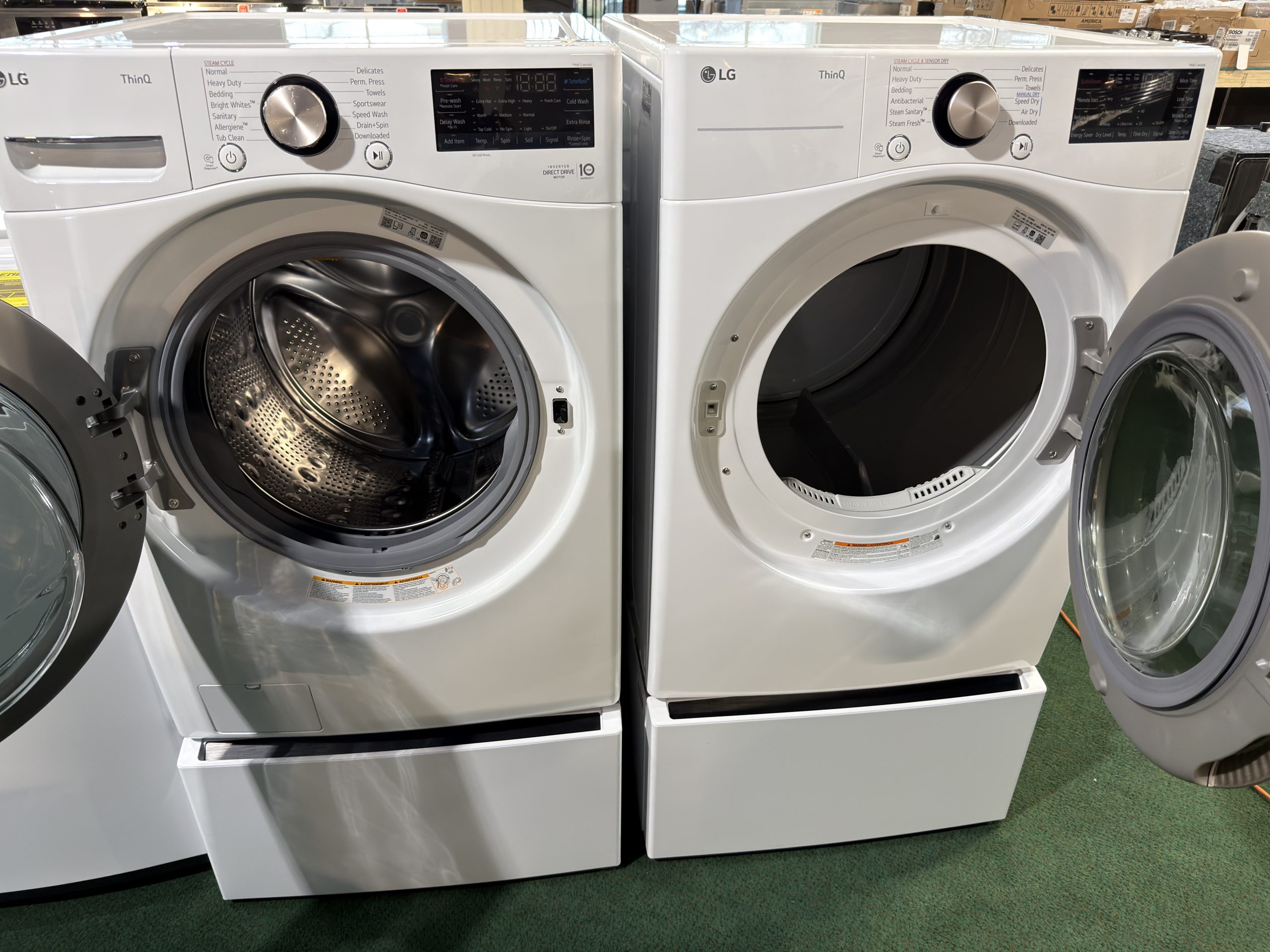 LG FRONT LOAD WASHER & ELECTRIC DRYER WITH PEDESTALS- WHITE