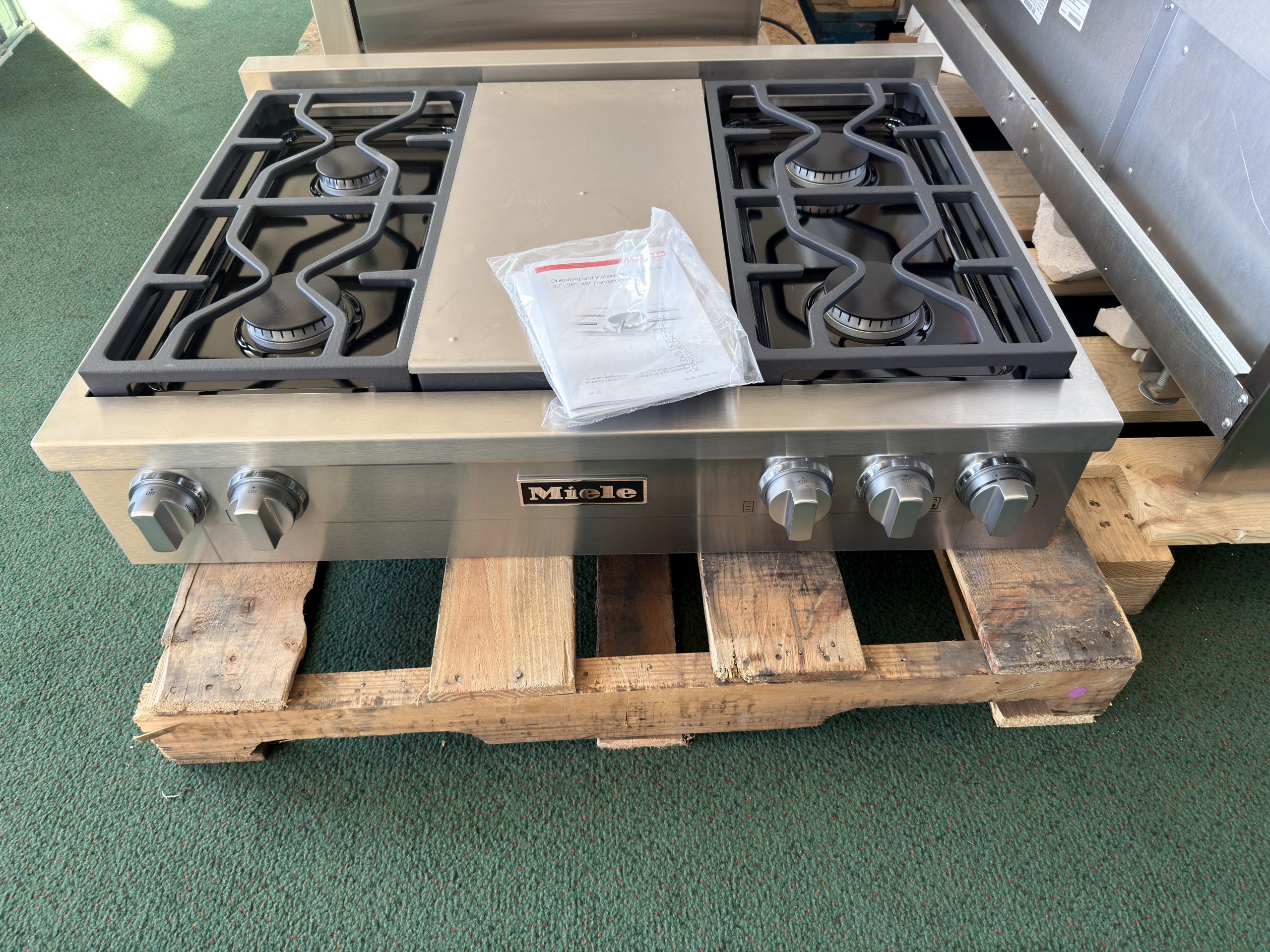 Miele KMR11361G 36 Inch Gas Rangetop with 4 Sealed Burners, Continuous Grates, 1 Continuous Simmer Burner, and M Pro Infrared Griddle: Natural Gas