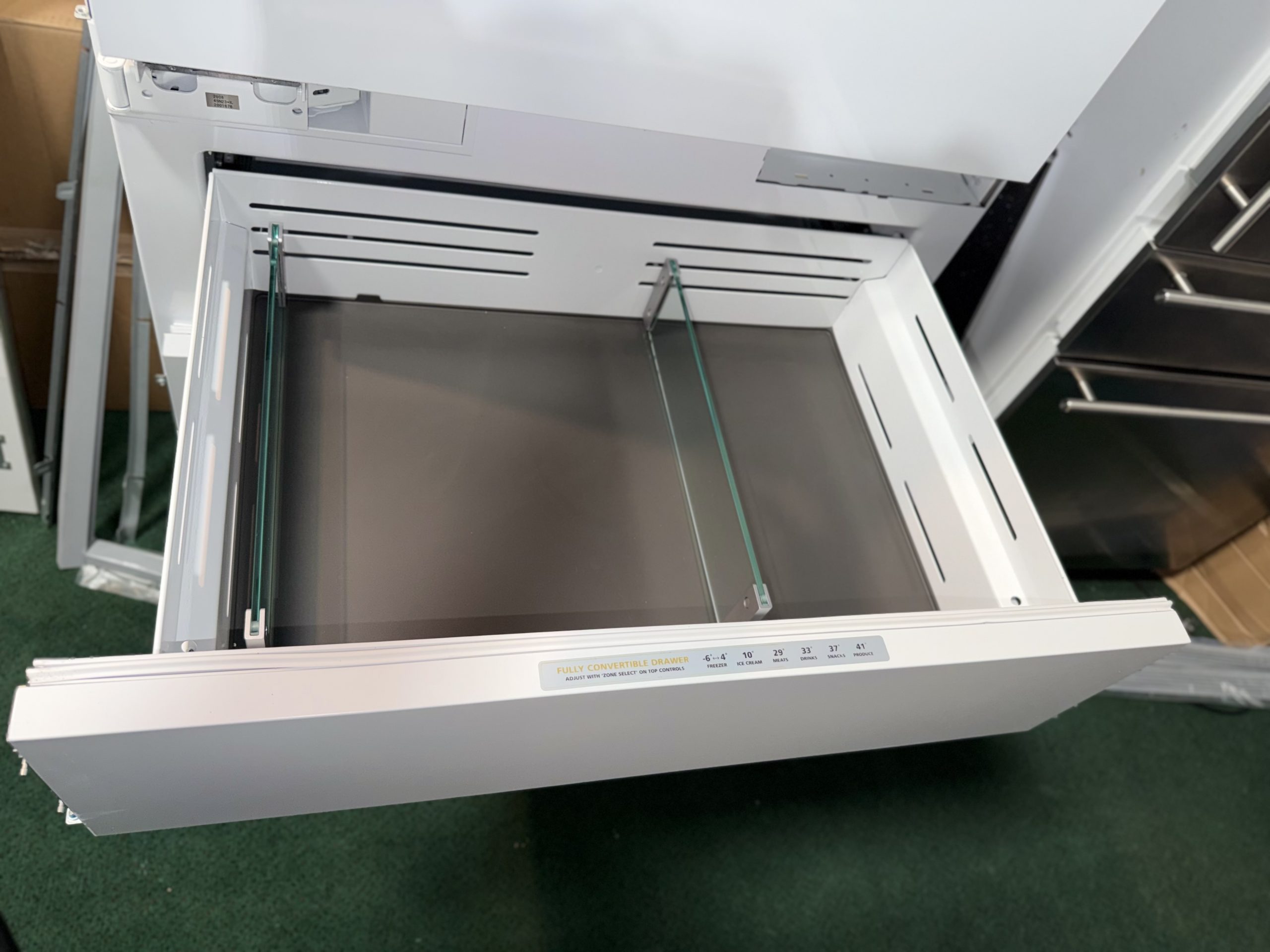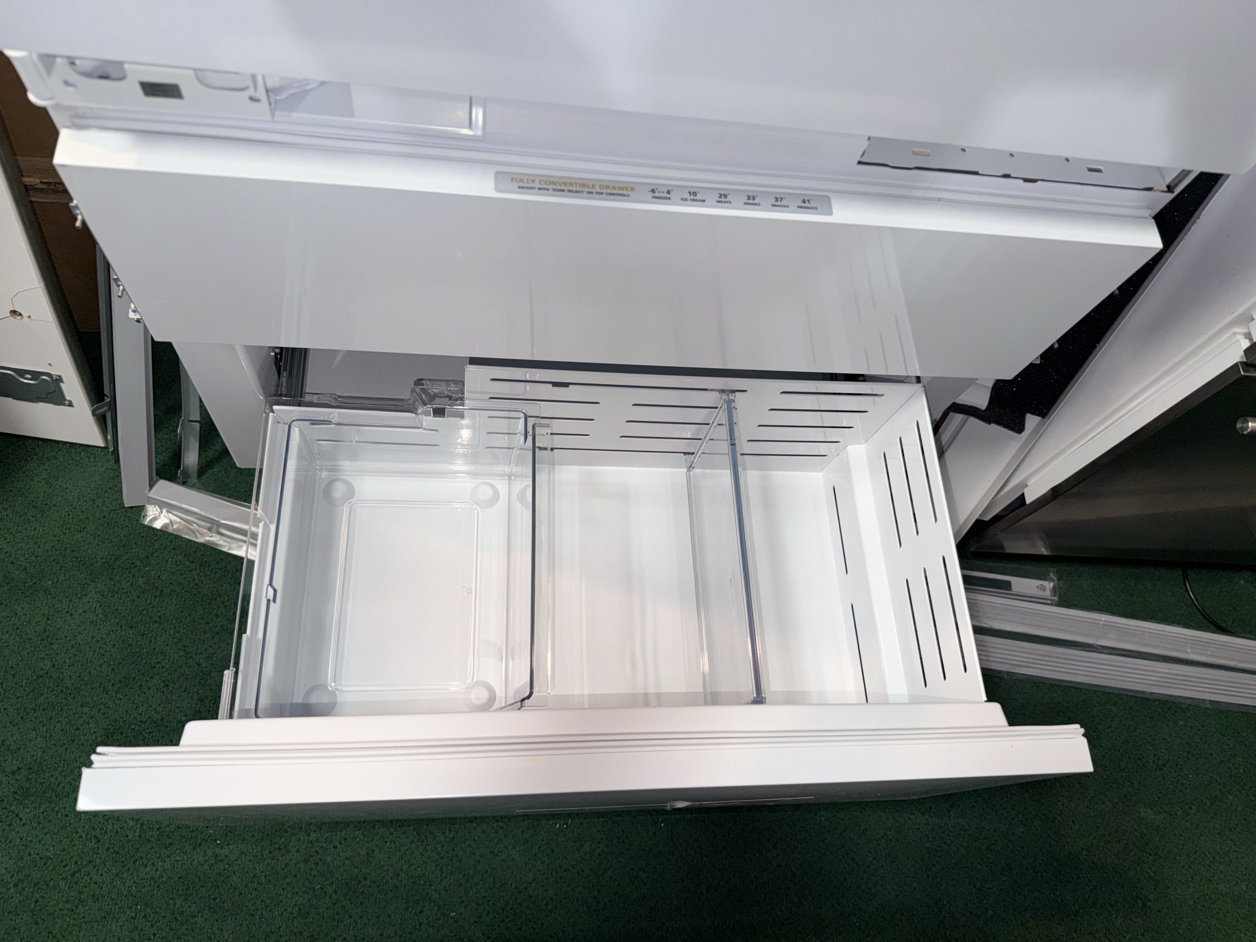 - The convertible middle drawer with 6 temperature settings allows you to choose temperatures best suited for storing cold drinks, meat, snacks, ice cream, produce or frozen items