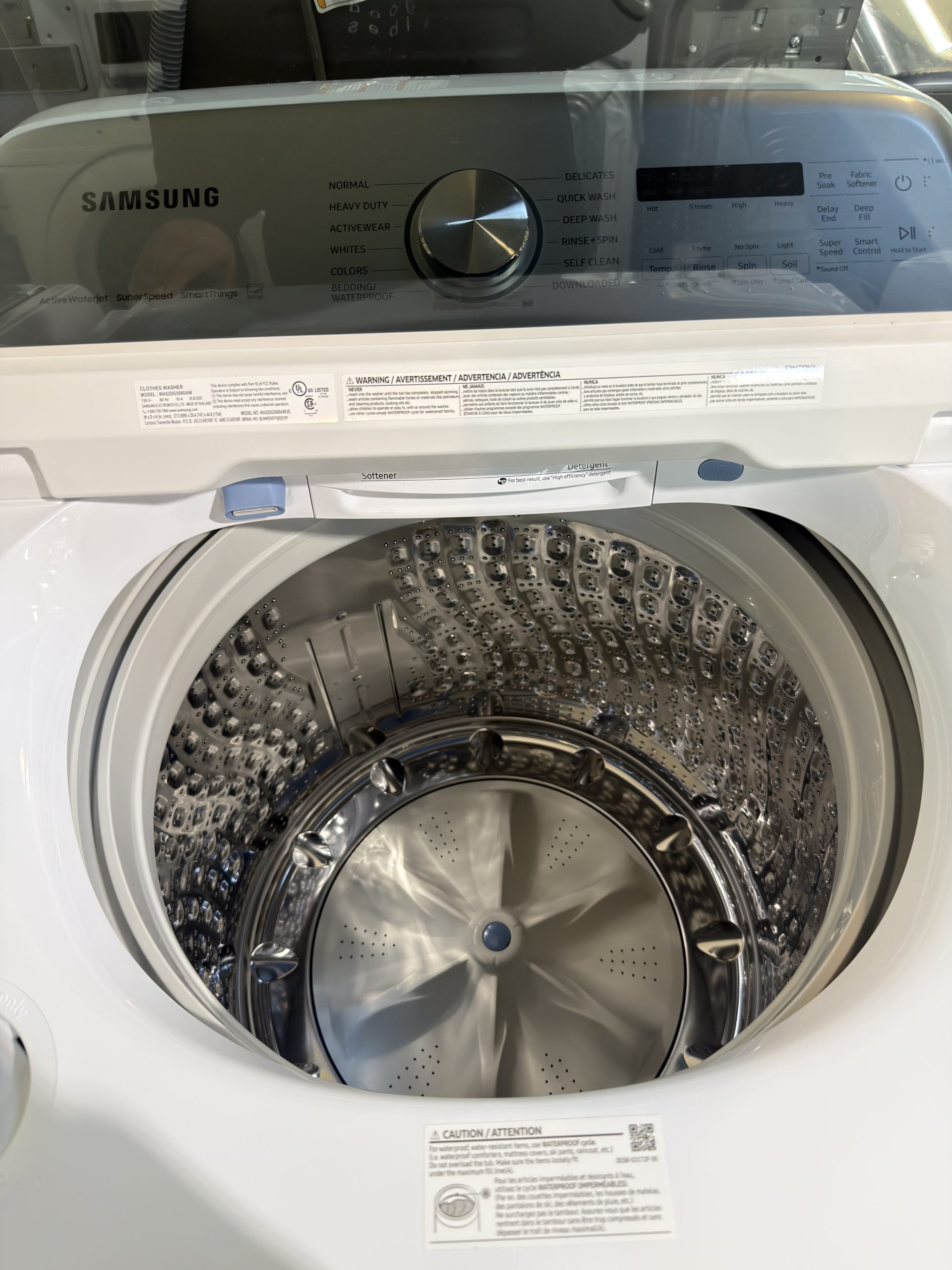Samsung WA52DG5500AW 27 Inch Smart Top Load Washer with 5.1 cu ft Capacity, Super Speed Wash, Wi-Fi Connectivity, Active Water Jet, EZ Access Tub, Deep Fill, Vibration Reduction Technology+, Swirl+ Tub Interior, Self Clean, Smart Care, Soft-Close Lid and ENERGY STAR? Certified.
