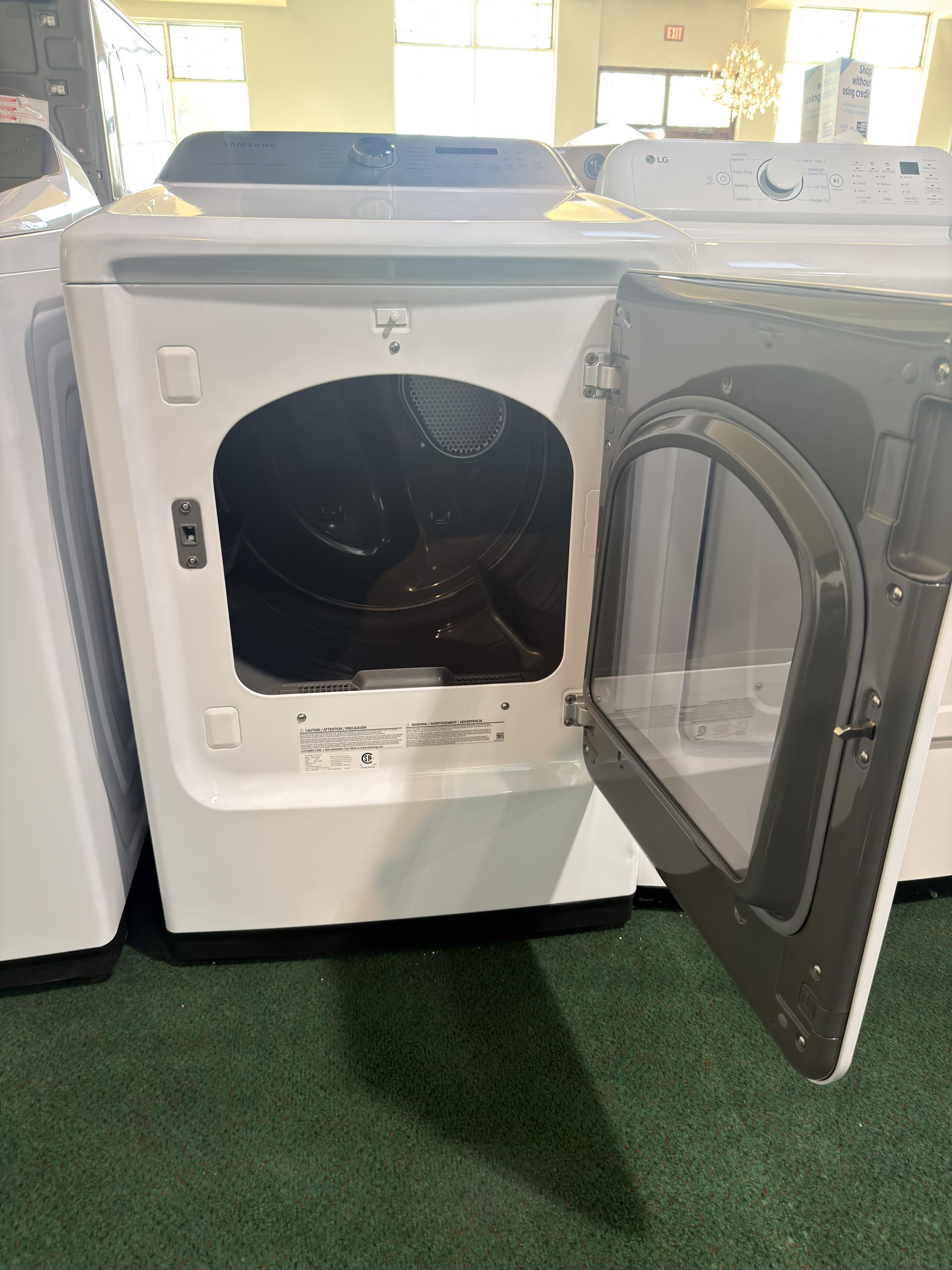 Samsung DVE52A5500W 27 Inch Electric Smart Dryer with 7.4 cu. ft. Capacity, Steam Sanitize+, Wi-Fi Connectivity, 18 Drying Cycles, Sensor Dry, Smart Care, Vent Sensor, Interior Drum Light, and Lint Filter Indicator: White.