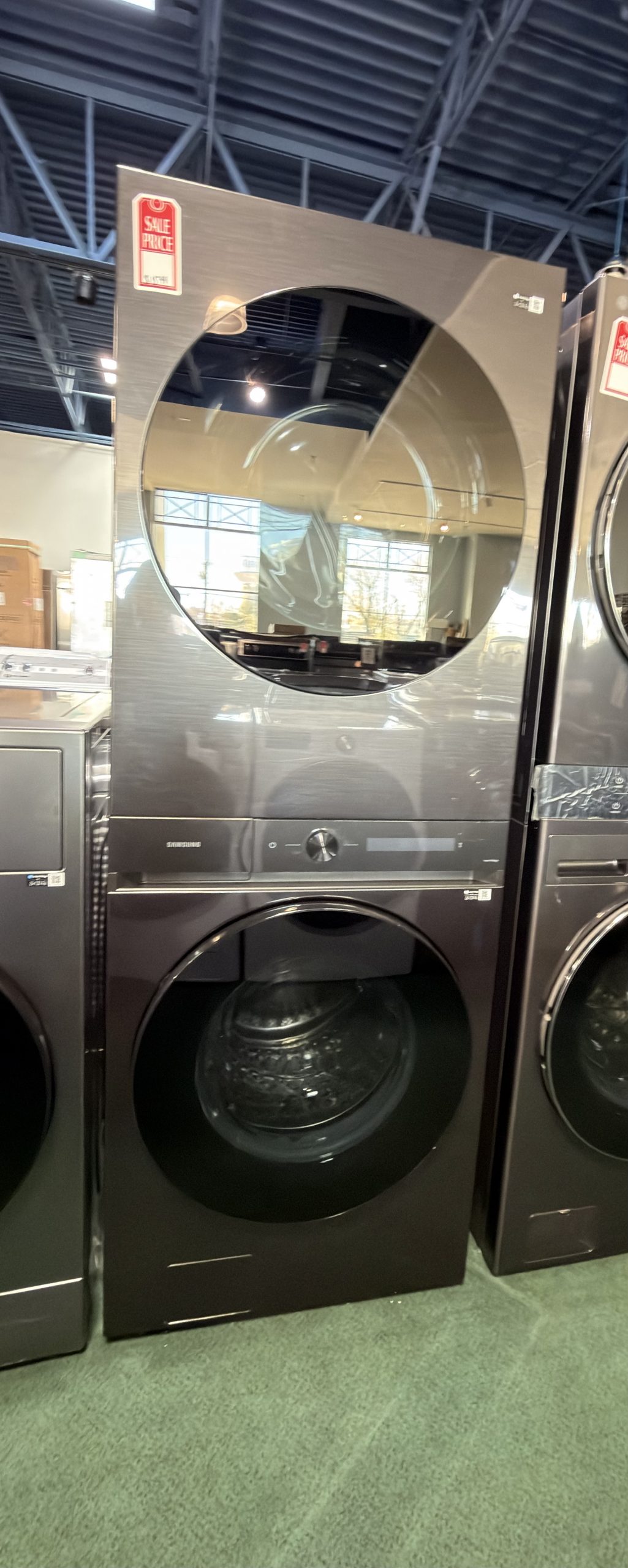 Samsung BESPOKE WH46DBH500EV 27 Inch Smart Electric Wash Tower with 4.6 cu ft Washer Capacity, 7.6 cu ft Dryer Capacity, Steam Wash, AI Smart Dial, Self Clean, Vent Sensor, Sensor Dry, 3 Way Venting, 20 Year Motor Warranty and Energy Star Certified (Two Plugs Required).