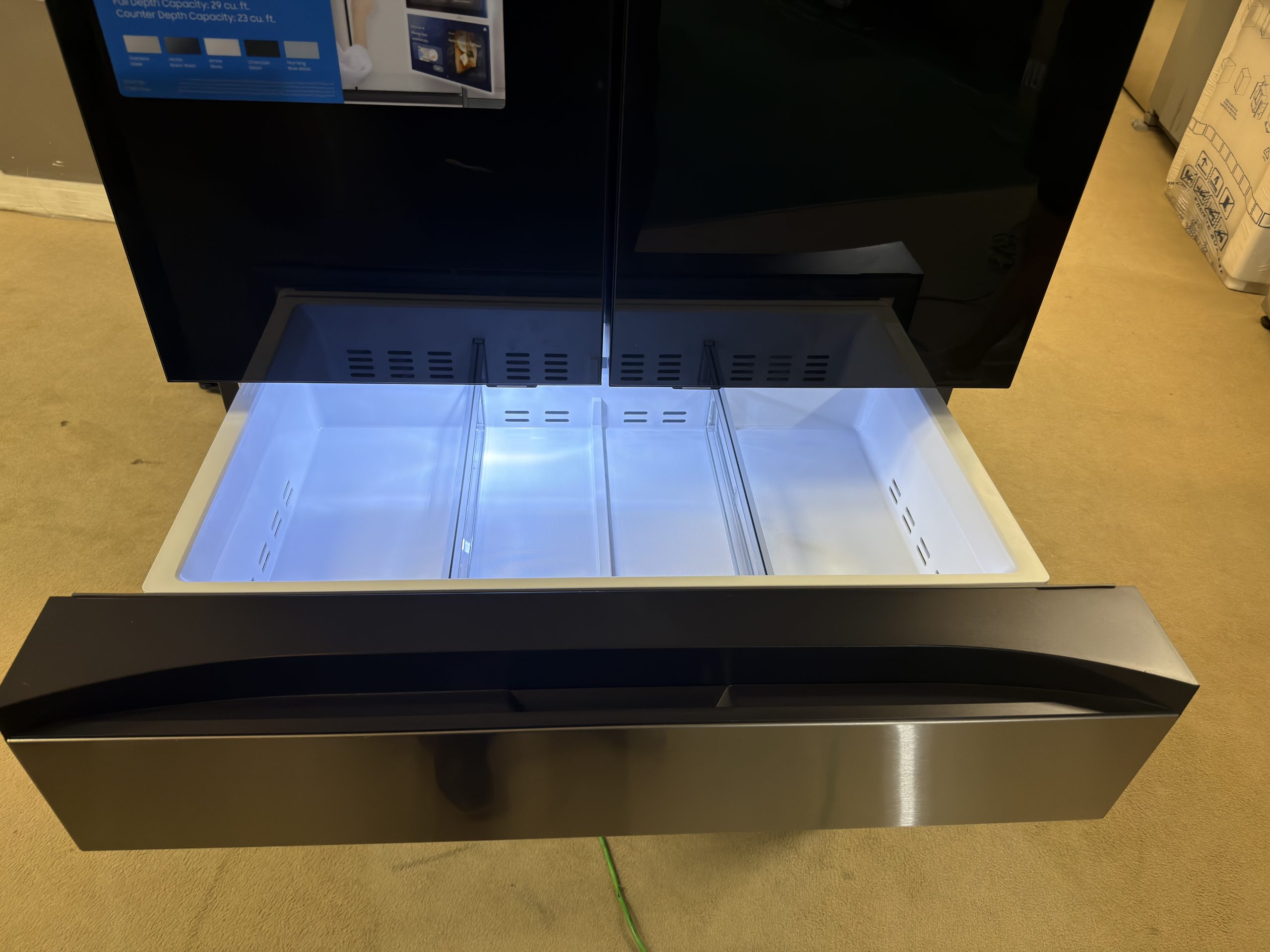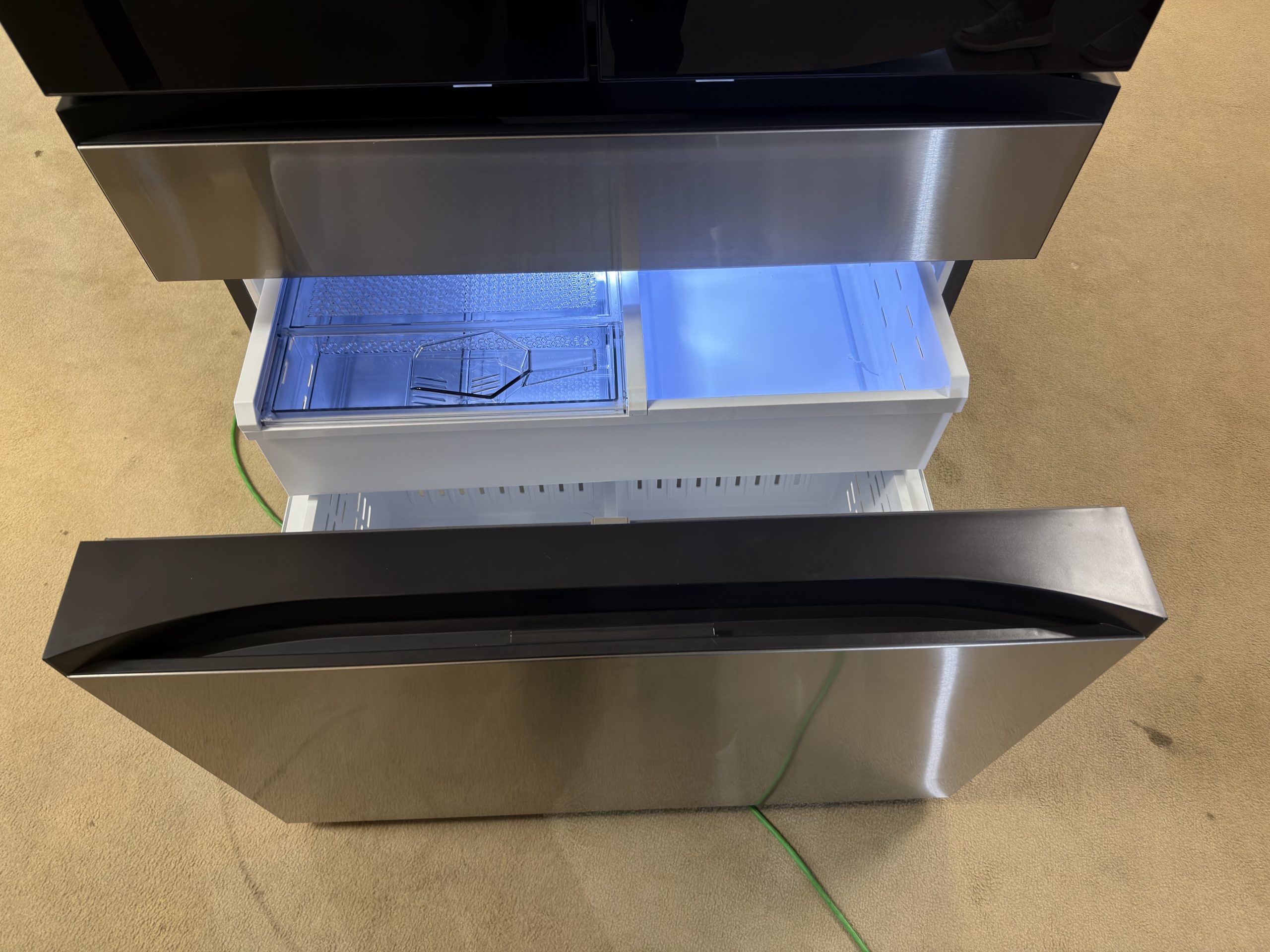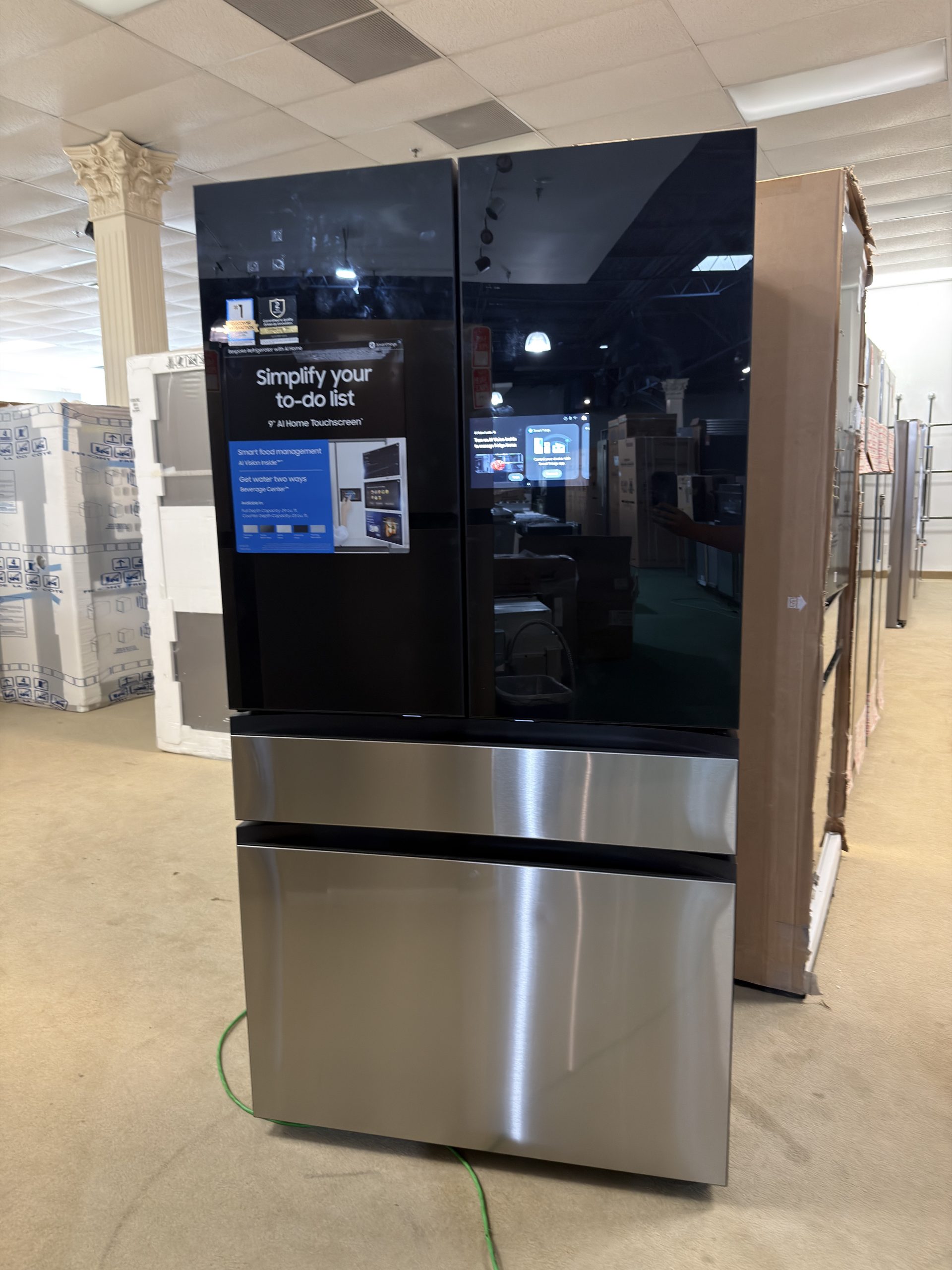 Samsung BESPOKE RF90F23BECR 36 Inch Counter Depth Smart 4-Door French Door Refrigerator with 23 cu. ft. Total Capacity, Beverage Center™, FlexZone™ Drawer, Twin Cooling Plus™, 9 Inch LCD Screen, Wi-Fi, Dual Ice Maker, and ENERGY STAR® Certified.