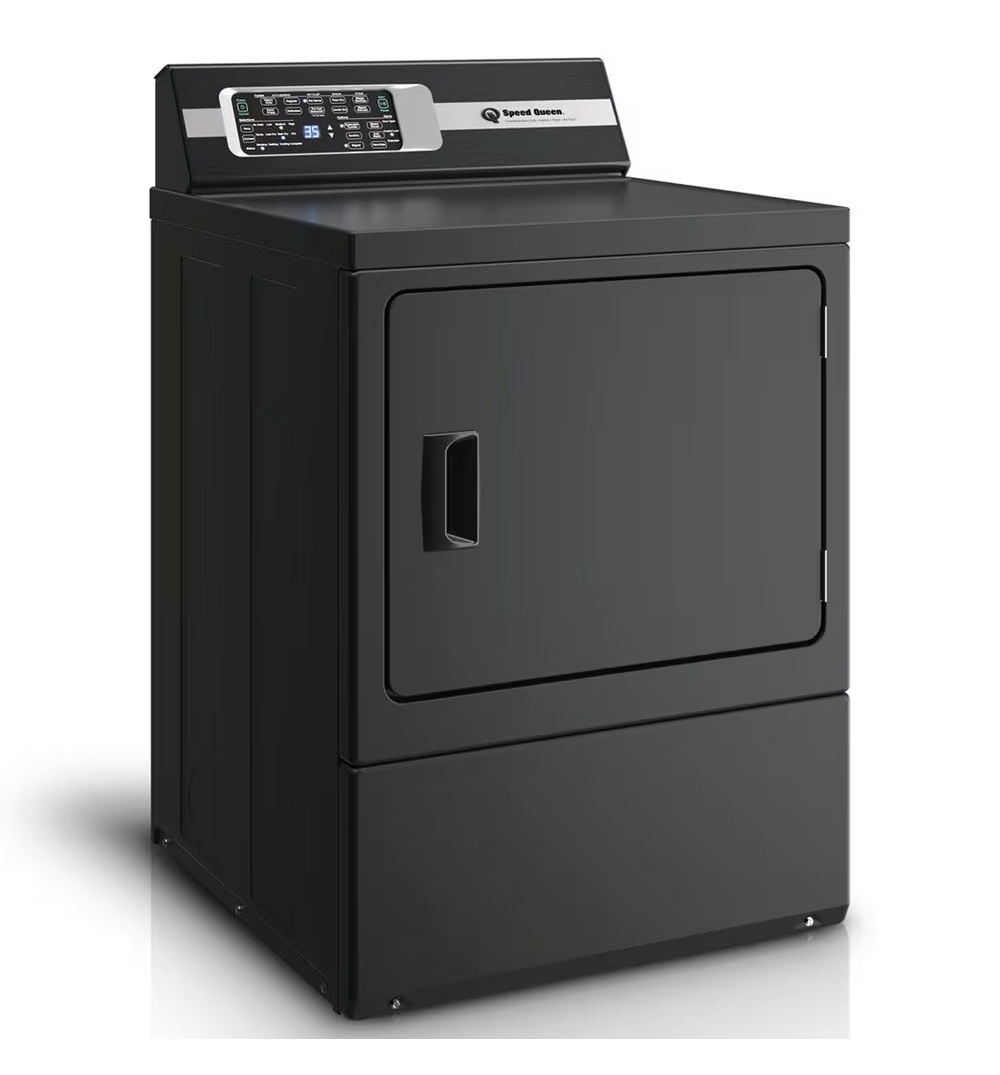 Speed Queen DR7004BE 27 Inch Electric Dryer with 7 Cu. Ft. Capacity, Pet Plus, Steam Refresh, Steam Boost, Anti- Static, Steam- Sanitize, Over-Dry Protection Technology, Extended Tumble, Reversible Door and Energy Star Certified: Matte Black.