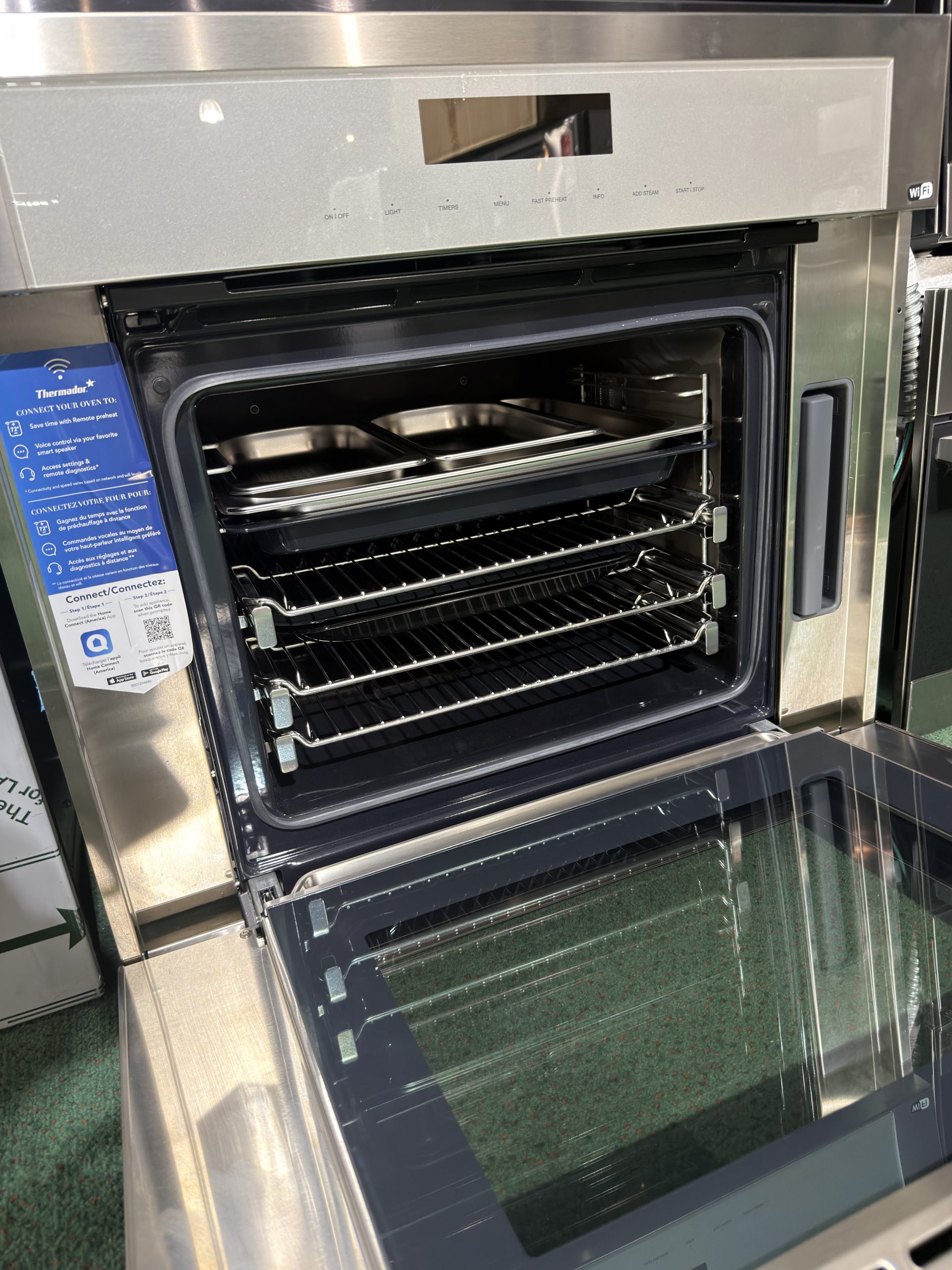 Thermador Masterpiece Series MEDS301WS 30 Inch Single Steam Smart Electric Wall Oven with 2.8 cu. ft. Oven Capacity, True Convection, Self-Clean, 17 Cooking Modes, Telescopic Racks, and Meat Probe.