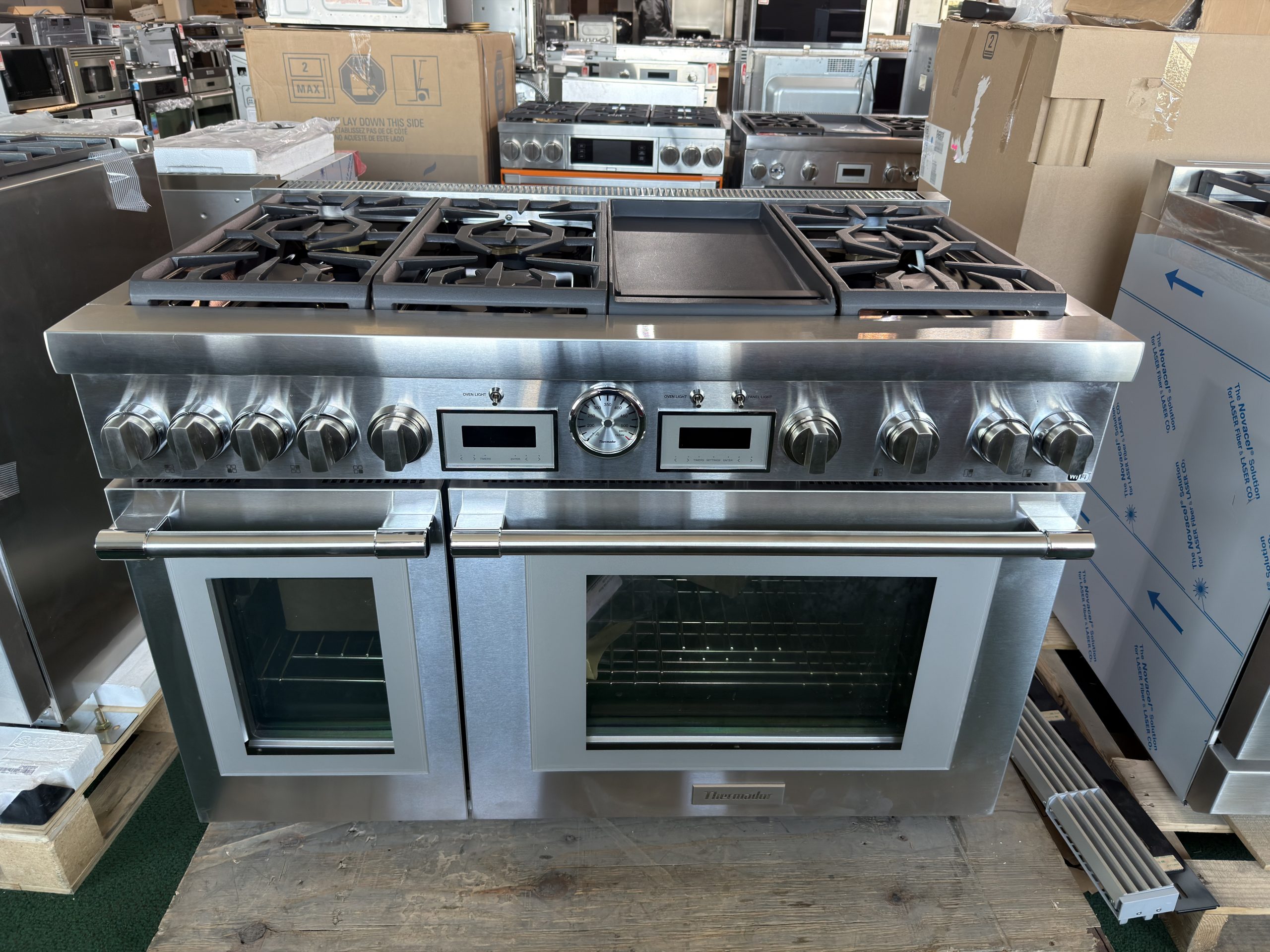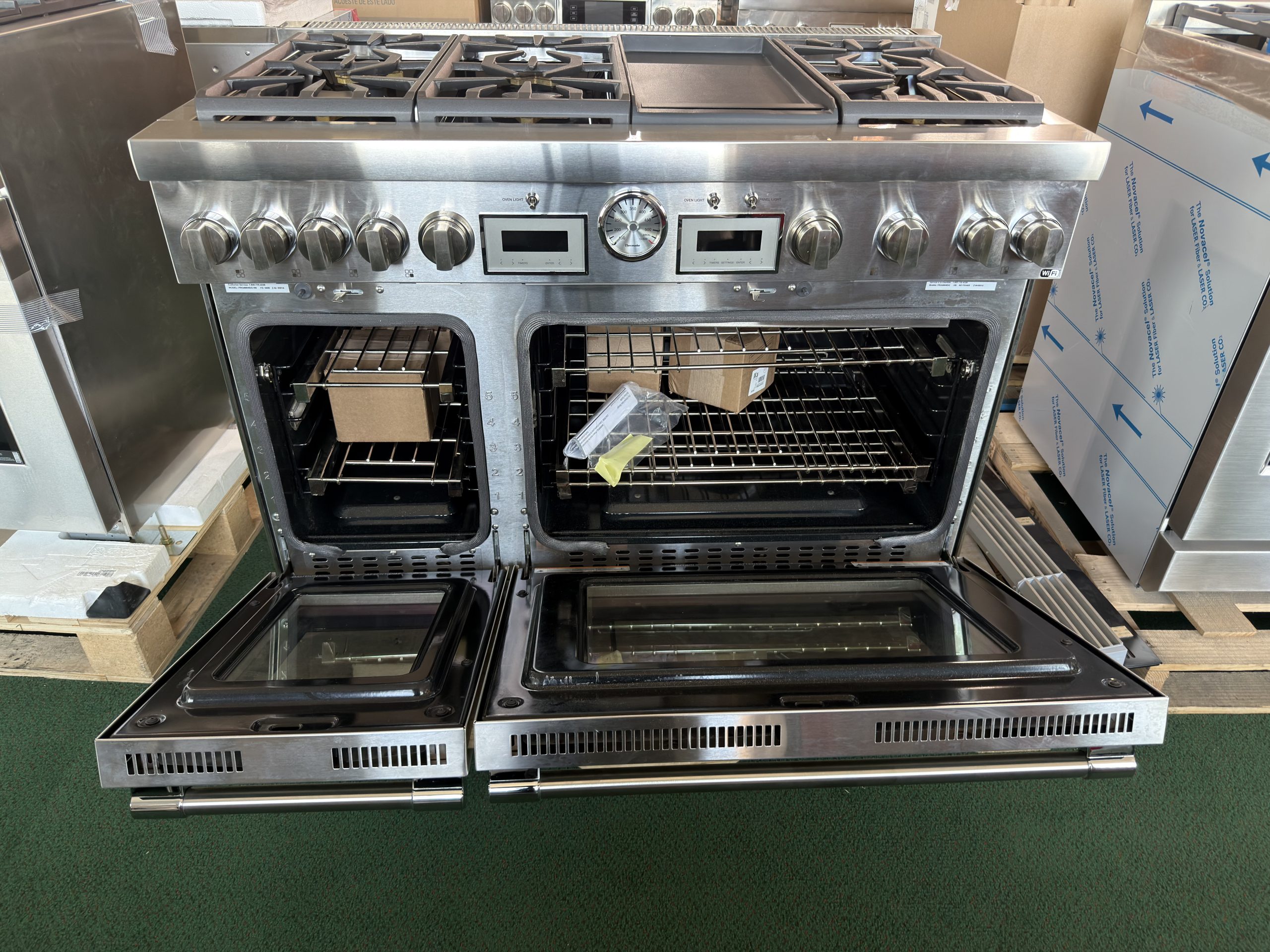 Thermador – ProGrand 48” 7.9 Cu. Ft. Freestanding Double Oven Gas Convection Range with Self-Cleaning – Liquid Propane Convertible – Stainless Steel