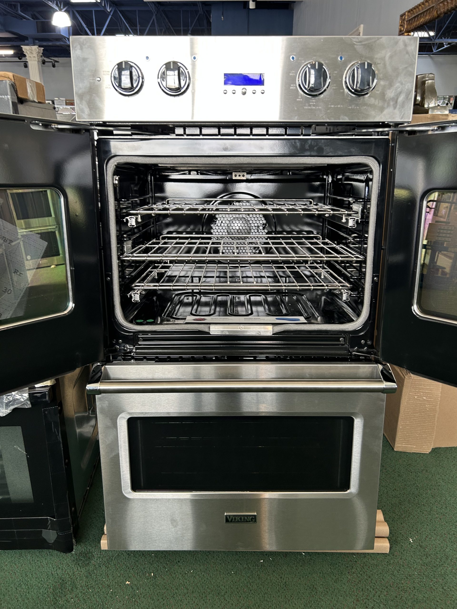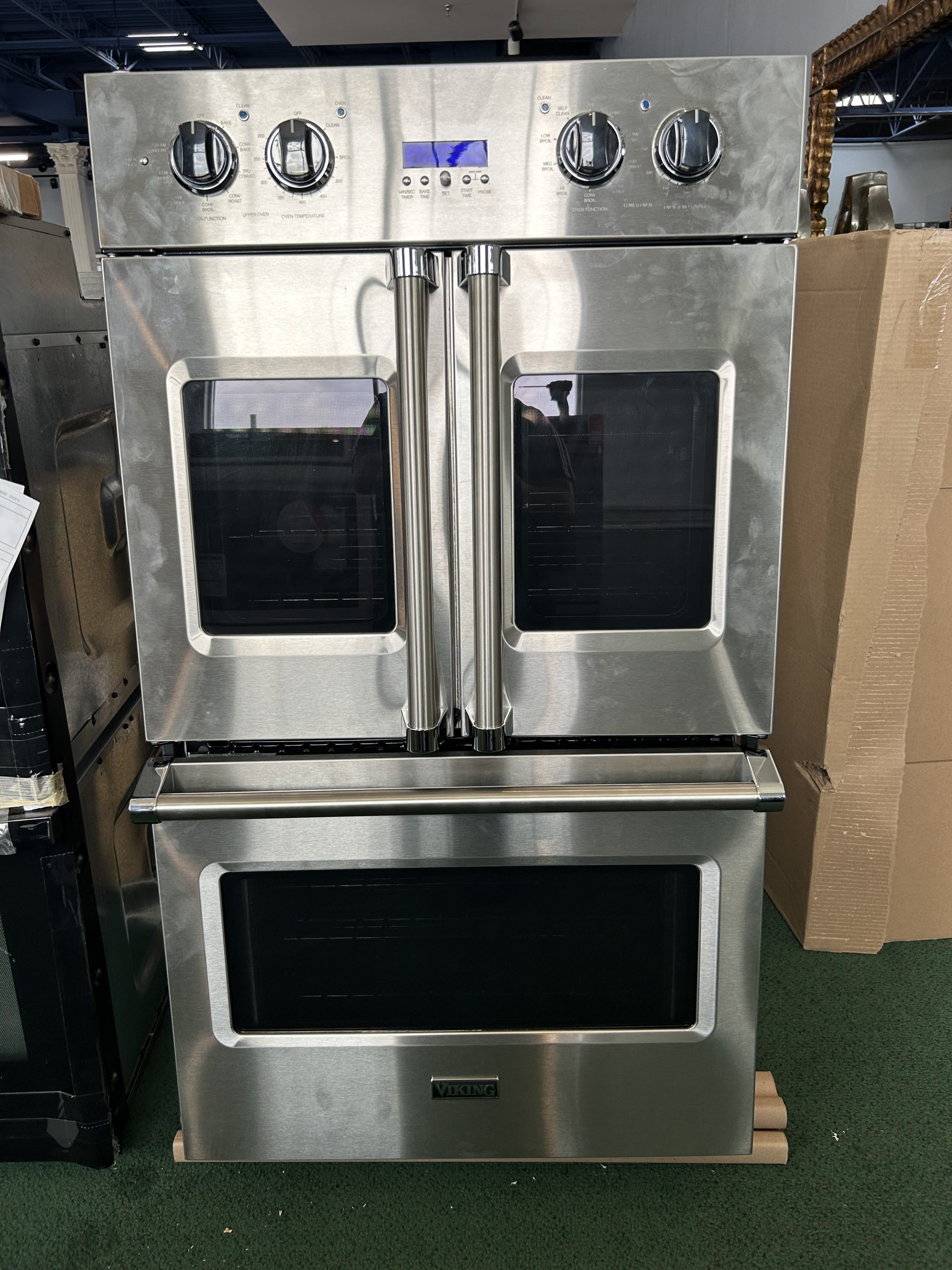 Viking 7 Series VDOF7301SS 30 Inch Double Convection Electric Wall Oven with 9.4 Cu. Ft. Total Capacity, Vari-Speed Dual Flow Convection, Steam/Self-Clean, Two-Element Bake, Convection Defrost, Proof, TruConvec™ Convection, and Sabbath Mode: Stainless Steel.