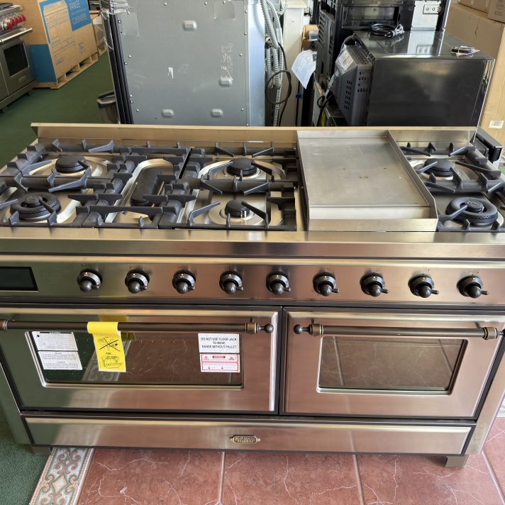 ILVE Majestic II 60 inch Dual Fuel Range with 9 Burners, Griddle (Natural Gas, Triple Glass Door, Stainless Steel, Burnished)