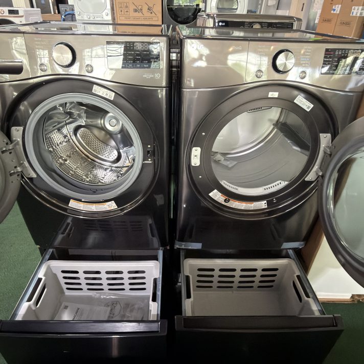 LG TurboWash 360 High Efficiency Front-Load Washer with Electric Smart Dryer Black Steel